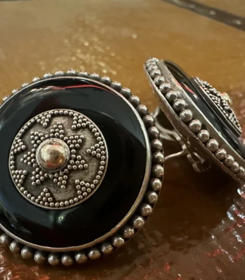 Silber-Ohrringe mit Onyx (Edelstein) & filigraner Verzierung