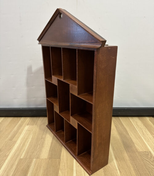 Vintage Wandregal in Hausform aus Holz, Sammler Vitrine