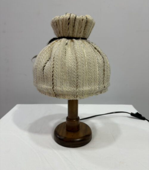 Vintage Tischlampe mit Stoffschirm und Holzfuss, 1970er Jahre