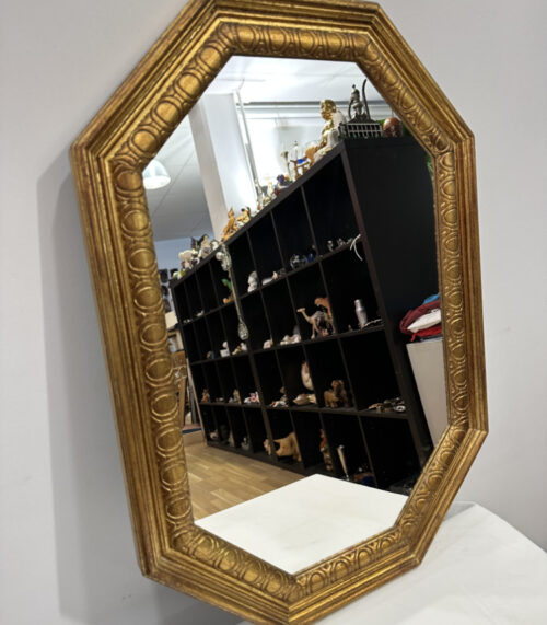 Vintage achteckiger Wandspiegel mit Goldrahmen und Ornamentprägung ca. 1960-1980