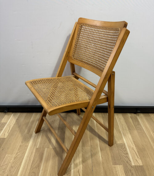 Klappstuhl aus Holz mit Wiener Geflecht, Vintage der 1970er Jahre