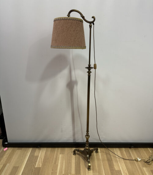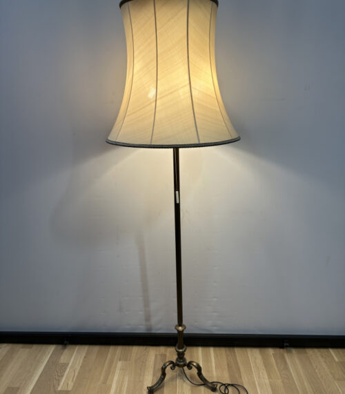 Vintage Stehlampe aus den 1970er/80er Jahren, Messingfuss und Stoffschirm in Taillenform