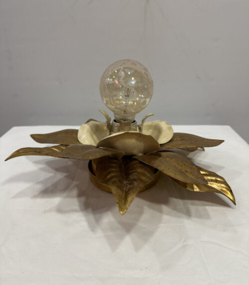 Florale Wandleuchte aus Metall in Gold-Creme