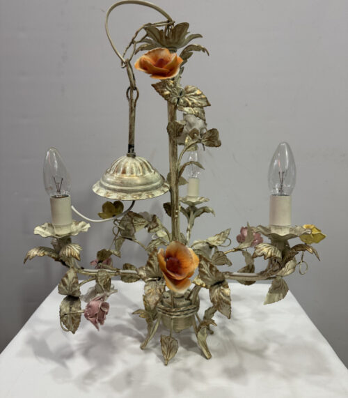 Florentiner Hängelampe mit Porzellanblüten, ca. 1960er Jahre