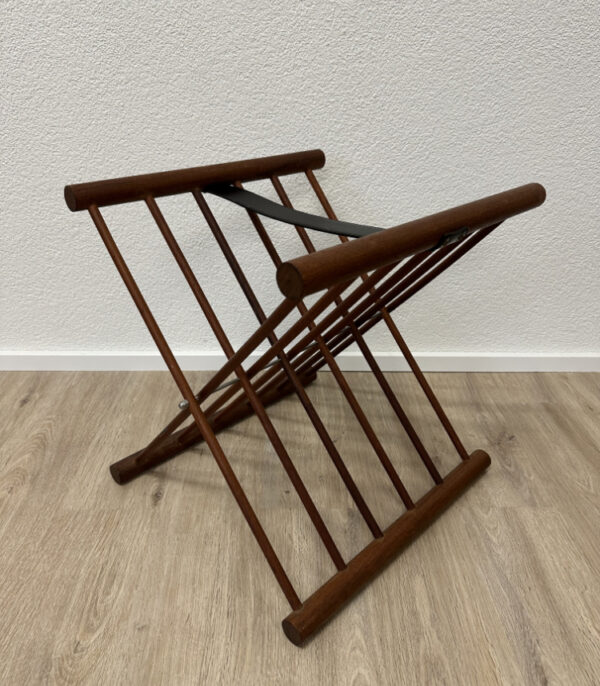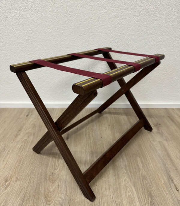 Vintage Hotel Kofferablage aus Holz mit Gurten (ca. 1960er–1970er Jahre)