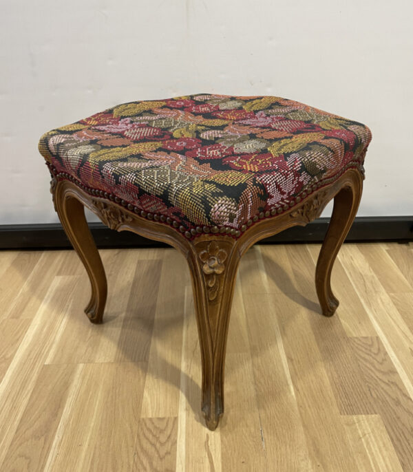 Antiker Hocker im Stil Louis XV mit floraler Stickerei, frühes 20. Jahrhundert