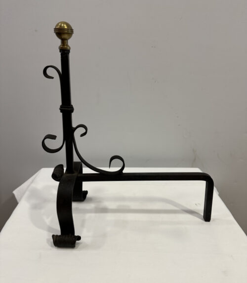 Schwarze Kaminböcke mit Messingknauf handgeschmiedetes Paar für klassische Feuerstellen