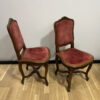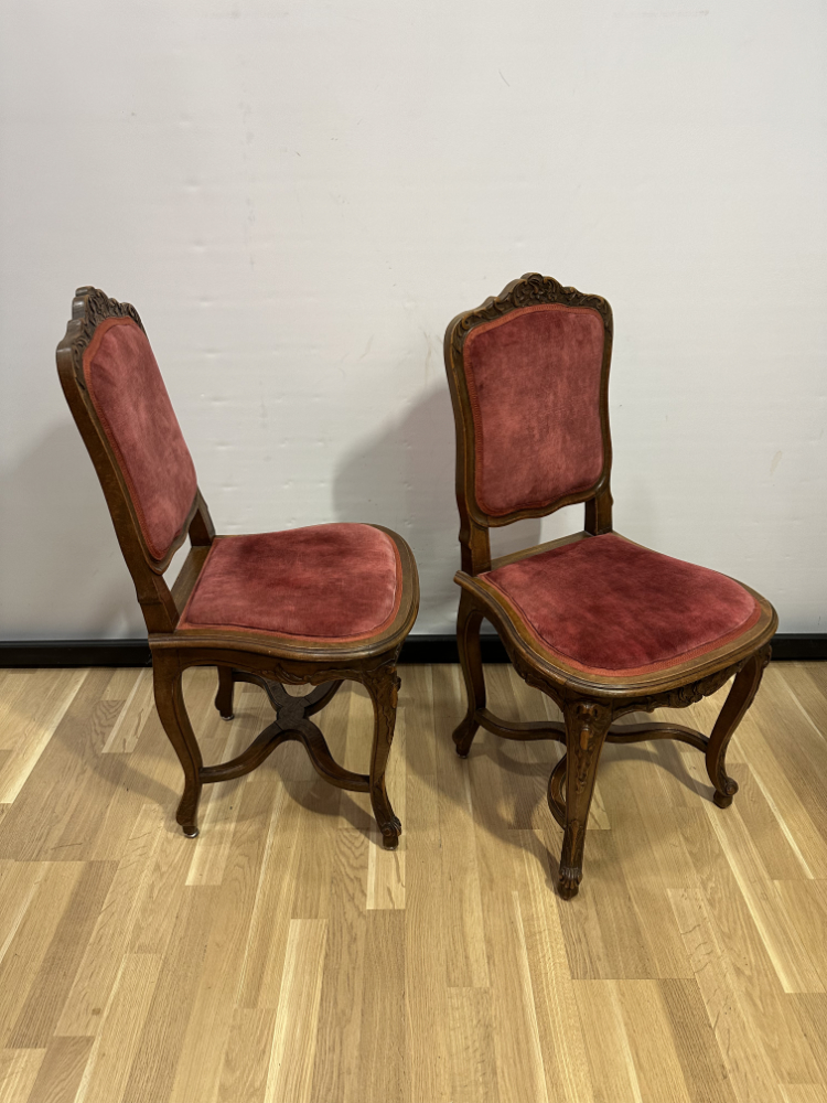 2er-Set antike Louis XV Stühle aus Nussbaum mit rotem Samtbezug
