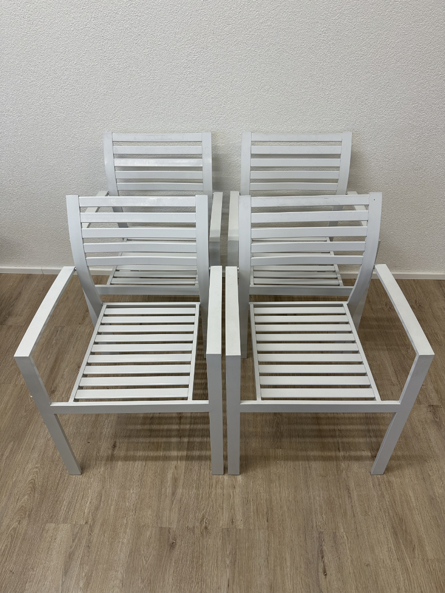 4er-Set Gartenstühle mit Armlehnen in Weiss (Metall)