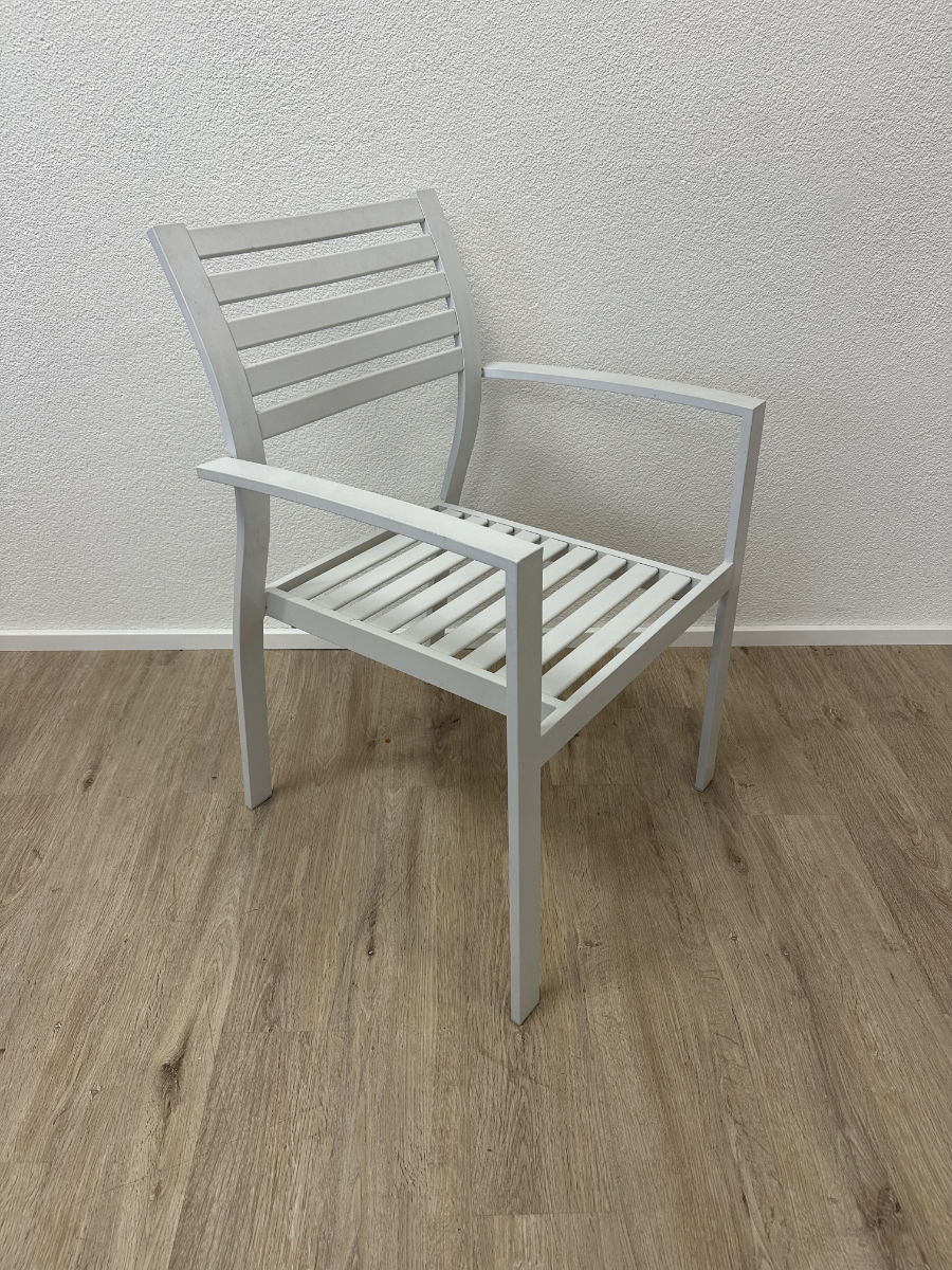 4 identische Stühle mit klarer Linienführung und bequemen Armlehnen. Die Sitz- und Rückenflächen sind als Latten gestaltet, dadurch wirkt das Set leicht und passt zu vielen Gartentischen, Balkonen oder auch in Wintergärten. Stapelbar sind sie nicht, dafür stehen sie stabil und wirken schlicht modern.