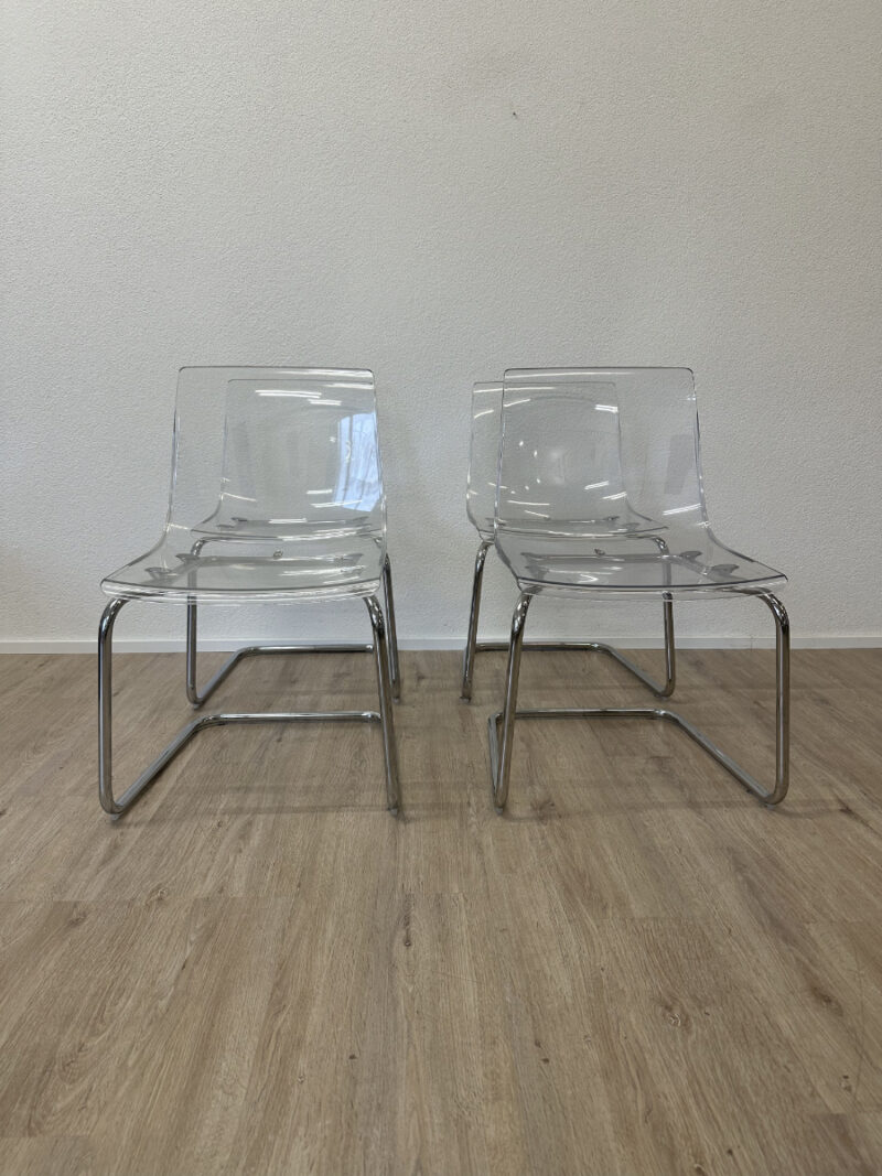 4er Set IKEA TOBIAS Freischwinger Stühle aus Polycarbonat und Chrom