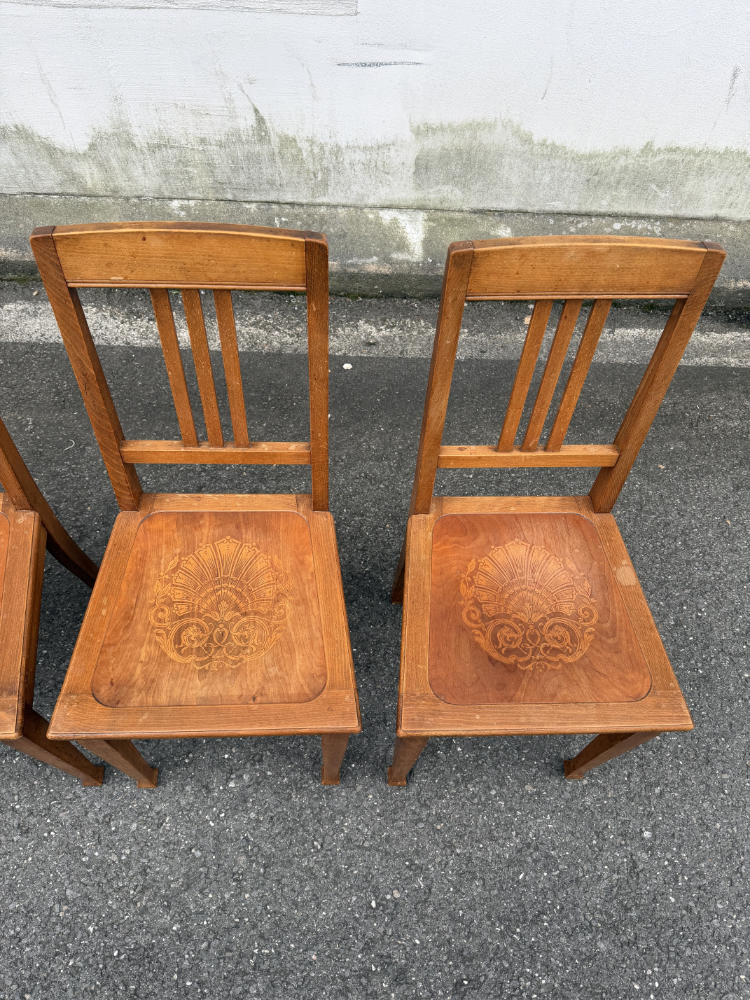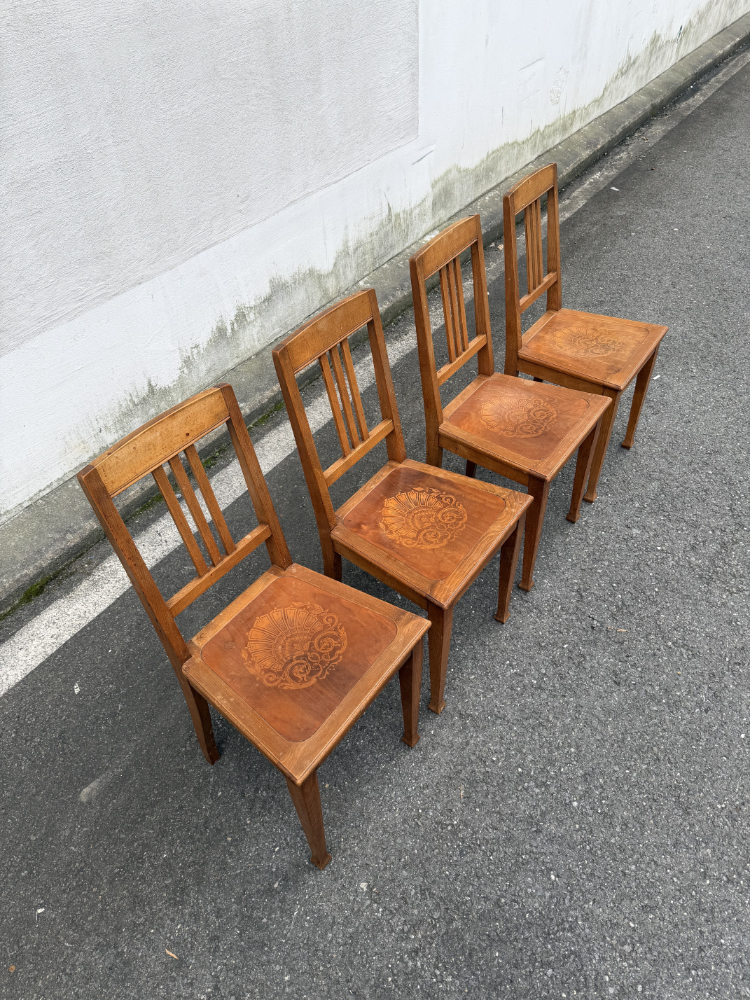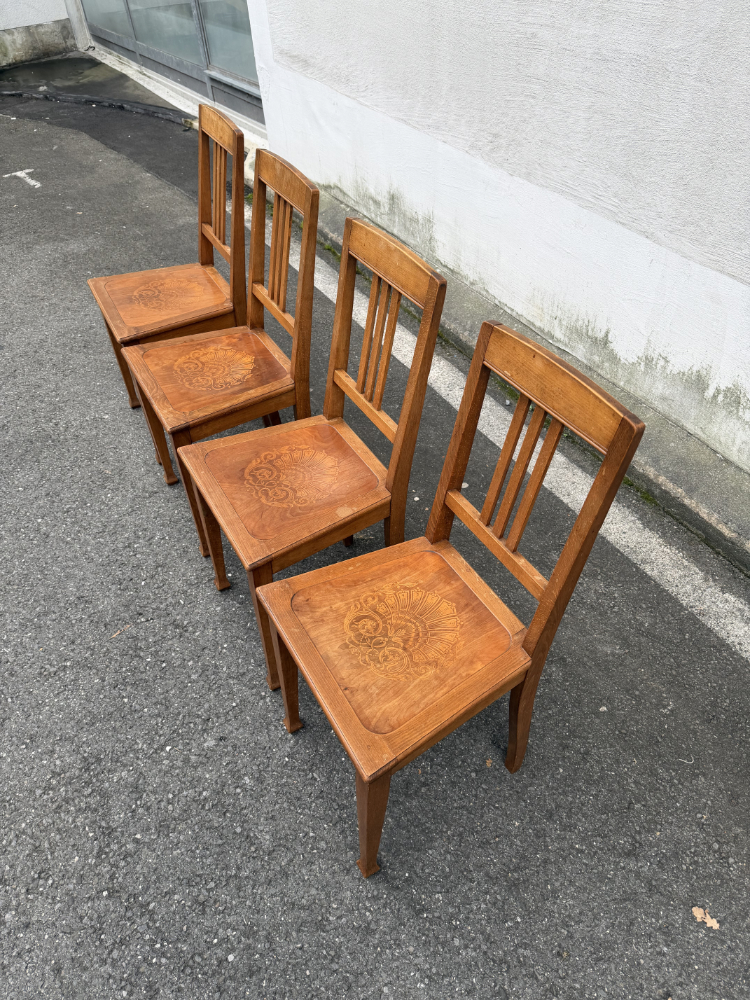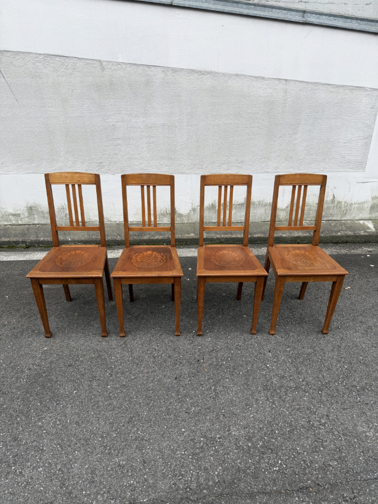 ✅ Satz von 4 Original-Holzstühlen, Jugendstil um 1910