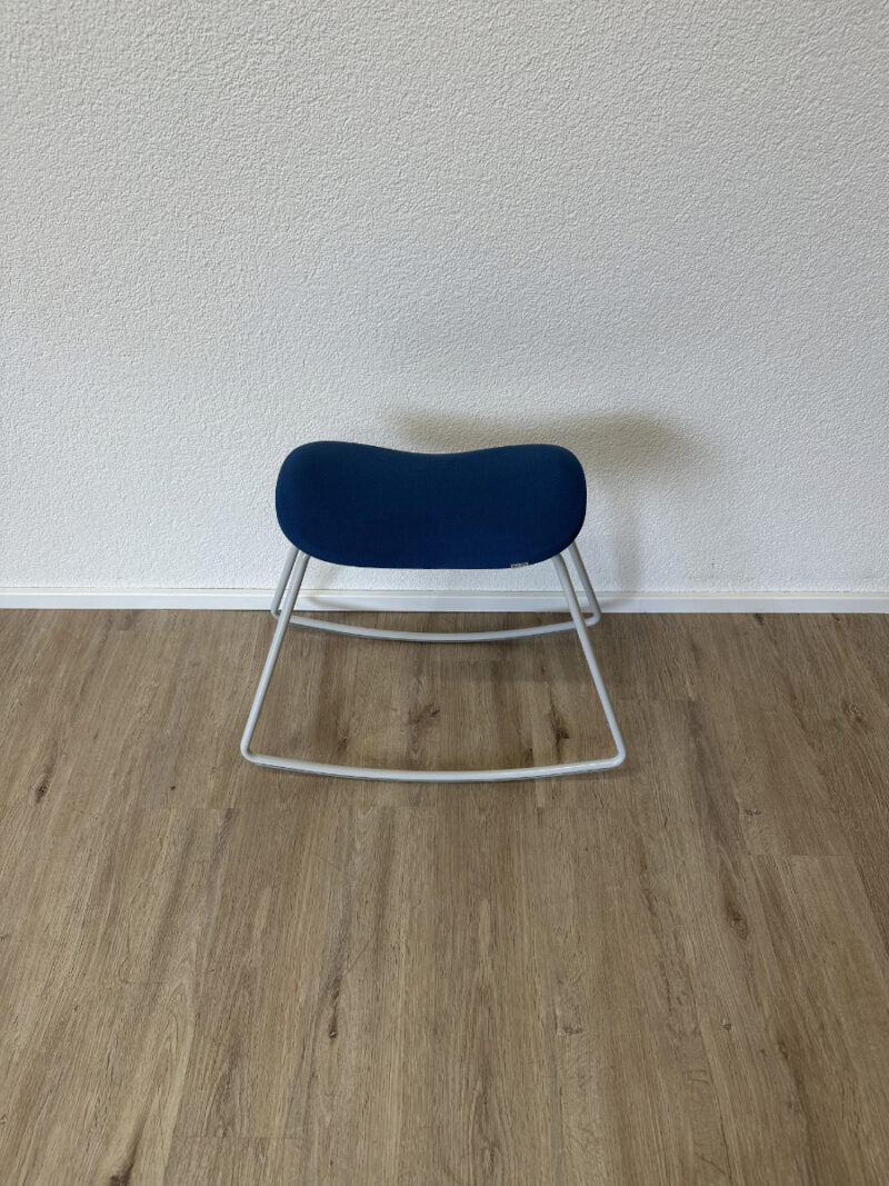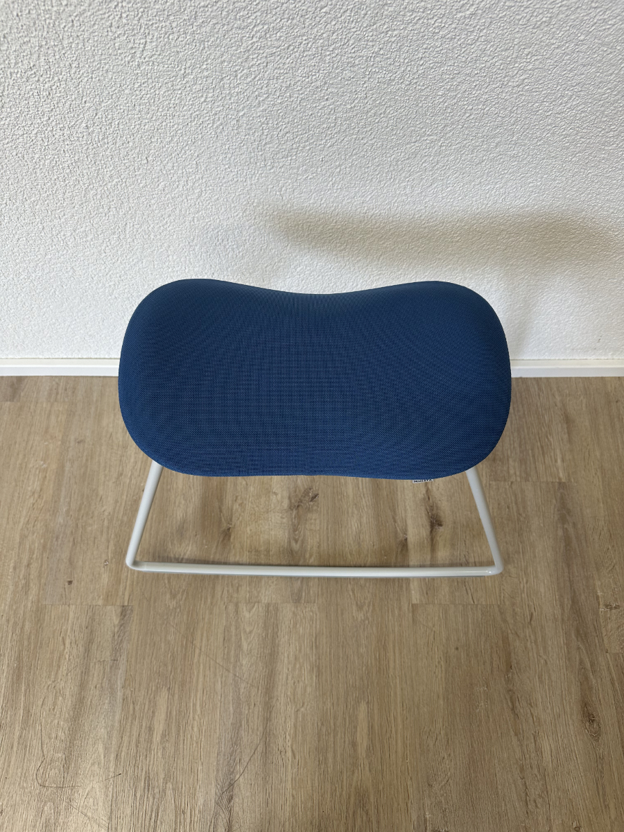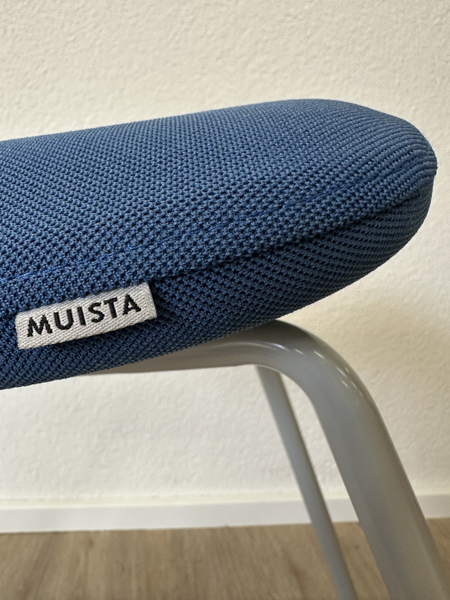 Klare Linien, funktionales Design und eine überraschend bequeme Sitzfläche. Dieser originale Sitzhocker von Muista zeigt skandinavisch geprägtes Design mit einem stabilen Metallkufengestell in Blau und einer ergonomisch geformten, gepolsterten Sitzfläche. Der blaue Stoffbezug wirkt ruhig und modern zugleich, während die geschwungene Form des Sitzes für angenehmen Halt sorgt. Unterseitig ist die Konstruktion sauber verschraubt und mit Herstellerprägung versehen.
