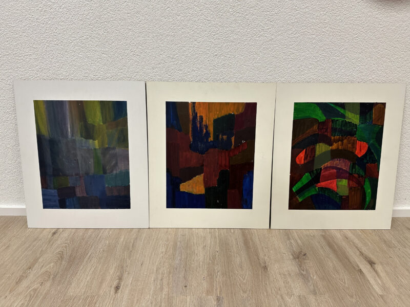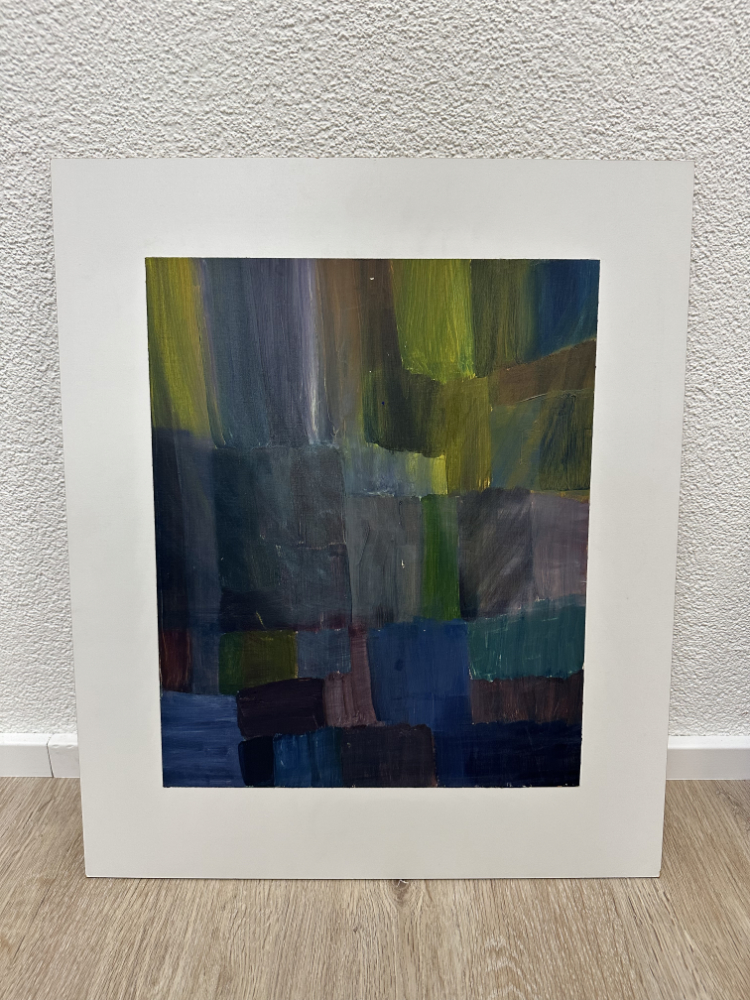 Kräftige Farben, freie Formen und ein spürbar intuitiver Malprozess prägen diese fünf abstrakten Arbeiten der Künstlerin Margrit aus Kriens. Jede Komposition steht für sich und wirkt zugleich als Teil eines geschlossenen Ensembles. Breite Pinselzüge, überlagerte Farbfelder und starke Kontraste erzeugen Tiefe und Bewegung. Die Werke laden dazu ein, ohne Vorgaben betrachtet zu werden und entwickeln je nach Raum und Licht immer neue Stimmungen. Ausgeführt in Öl auf Papier, jeweils mit breitem Passepartout, eignen sich die Arbeiten ideal für moderne Wohnräume, Ateliers oder kreative Arbeitsumgebungen.