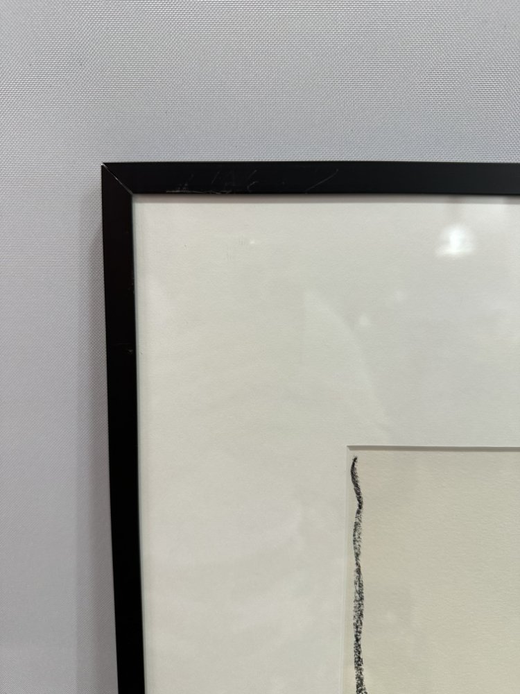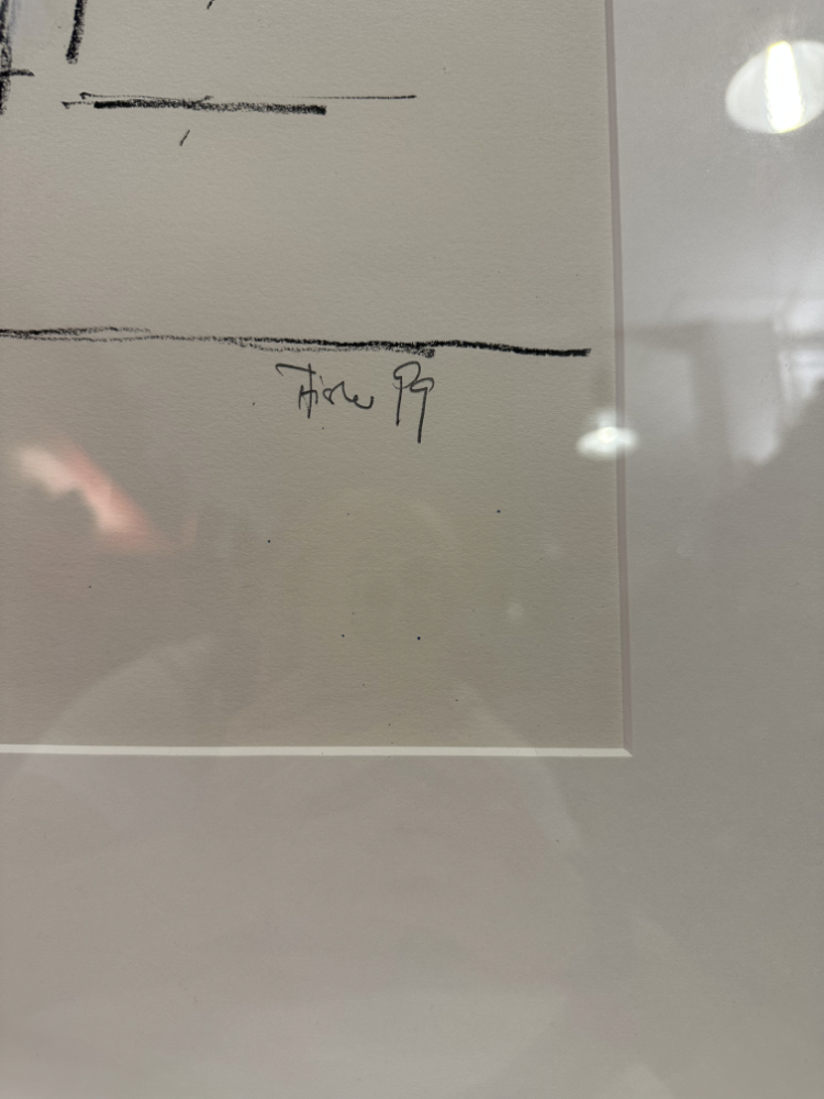 Das Werk ist hinter Passepartout gerahmt und durch Glas geschützt. Der schmale schwarze Metallrahmen zeigt leichte Gebrauchsspuren, das Blatt selbst ist in sehr gutem Zustand. Die Signatur unten rechts ist klar erkennbar.