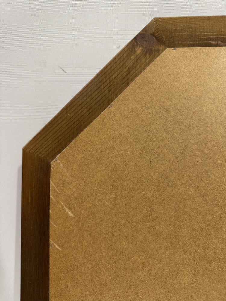 Dieser achteckige Wandspiegel verbindet schlichtes Handwerk mit warmem Holzcharakter. Der kantig gearbeitete Rahmen aus massivem Holz bringt Struktur und Natürlichkeit an die Wand, während die facettierte Form für einen modernen, geometrischen Akzent sorgt.