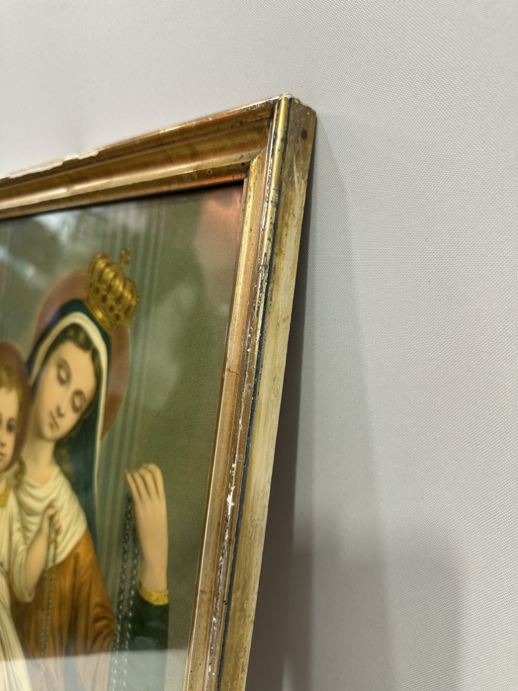 Andachtsbild Kunstdruck «Maria mit Kind und Rosenkranz» im Goldrahmen