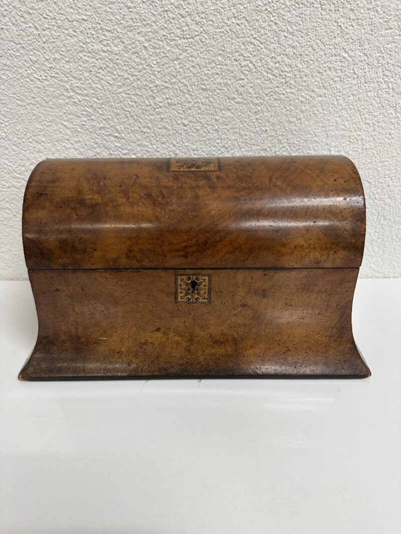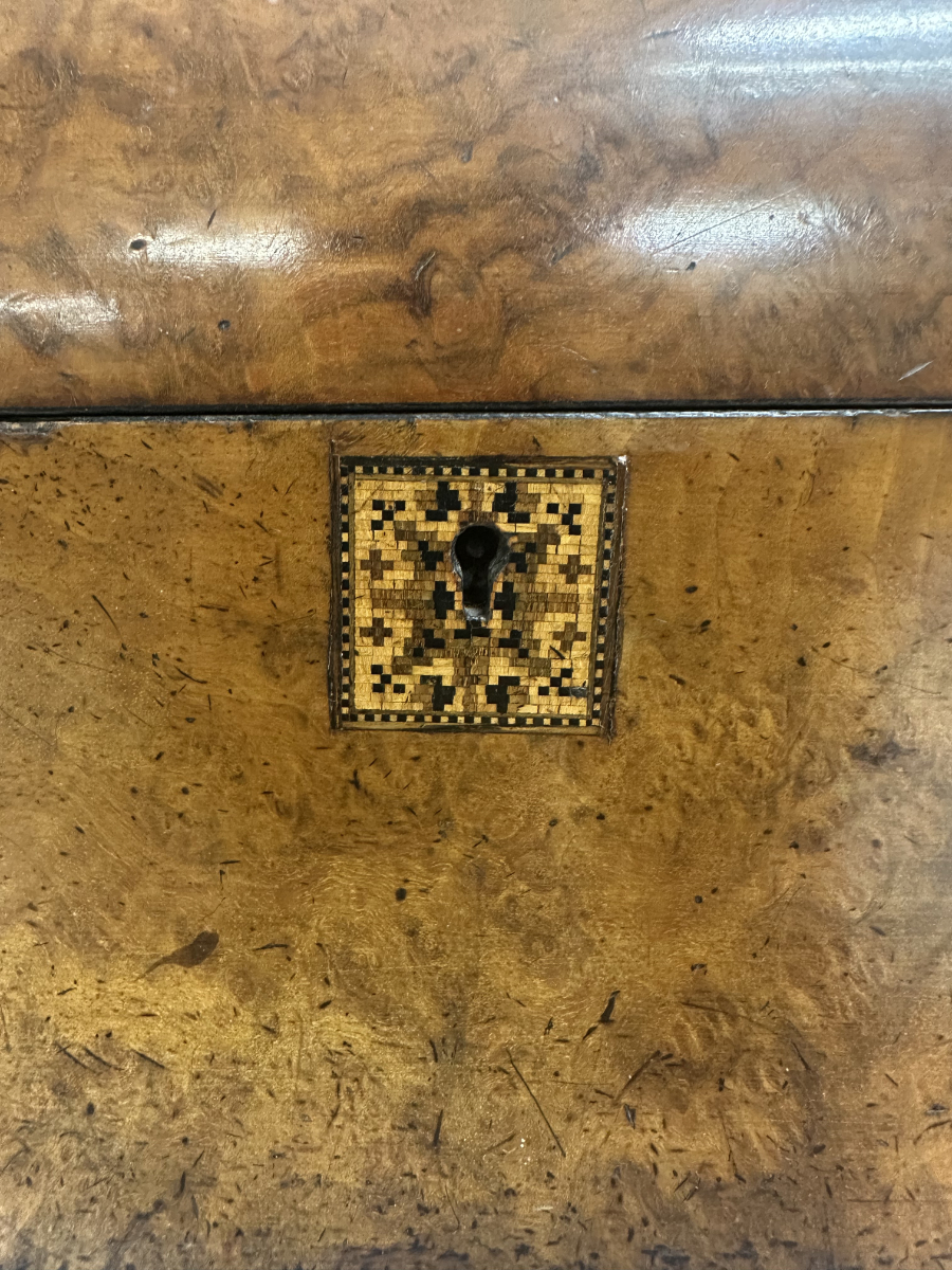 Antik Biedermeier Tea Caddy aus Wurzelholz mit Intarsie, ca. 1820 – 1850