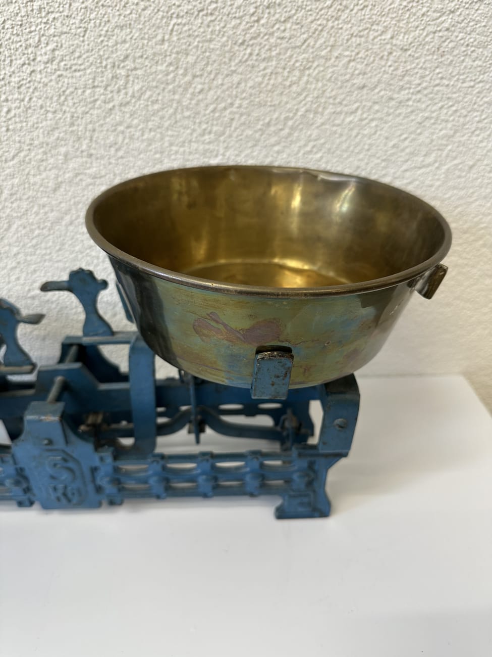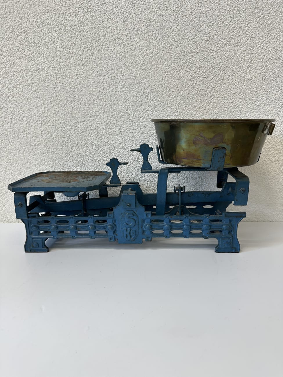 Antik Industrie Balkenwaage aus Gusseisen mit Messingschale bis 5 kg