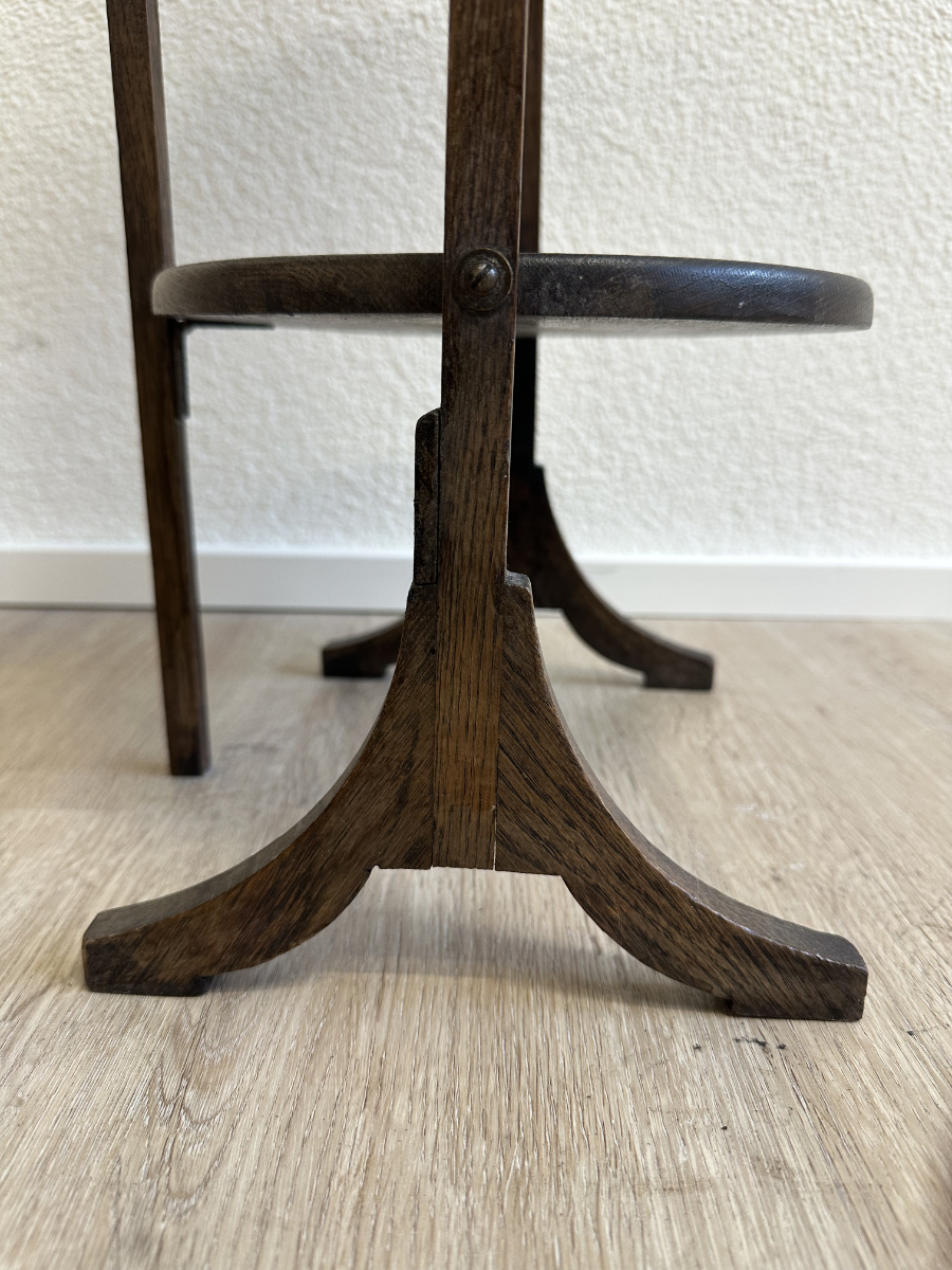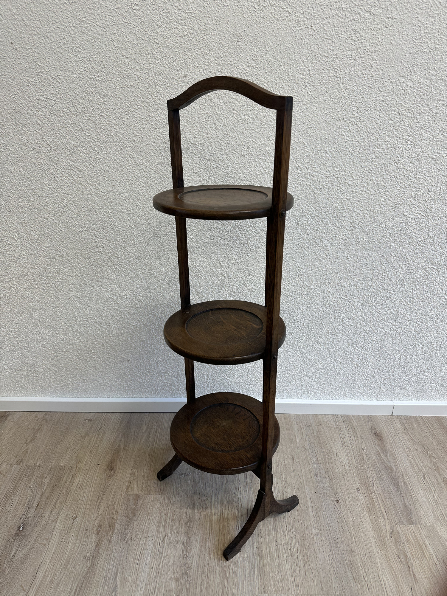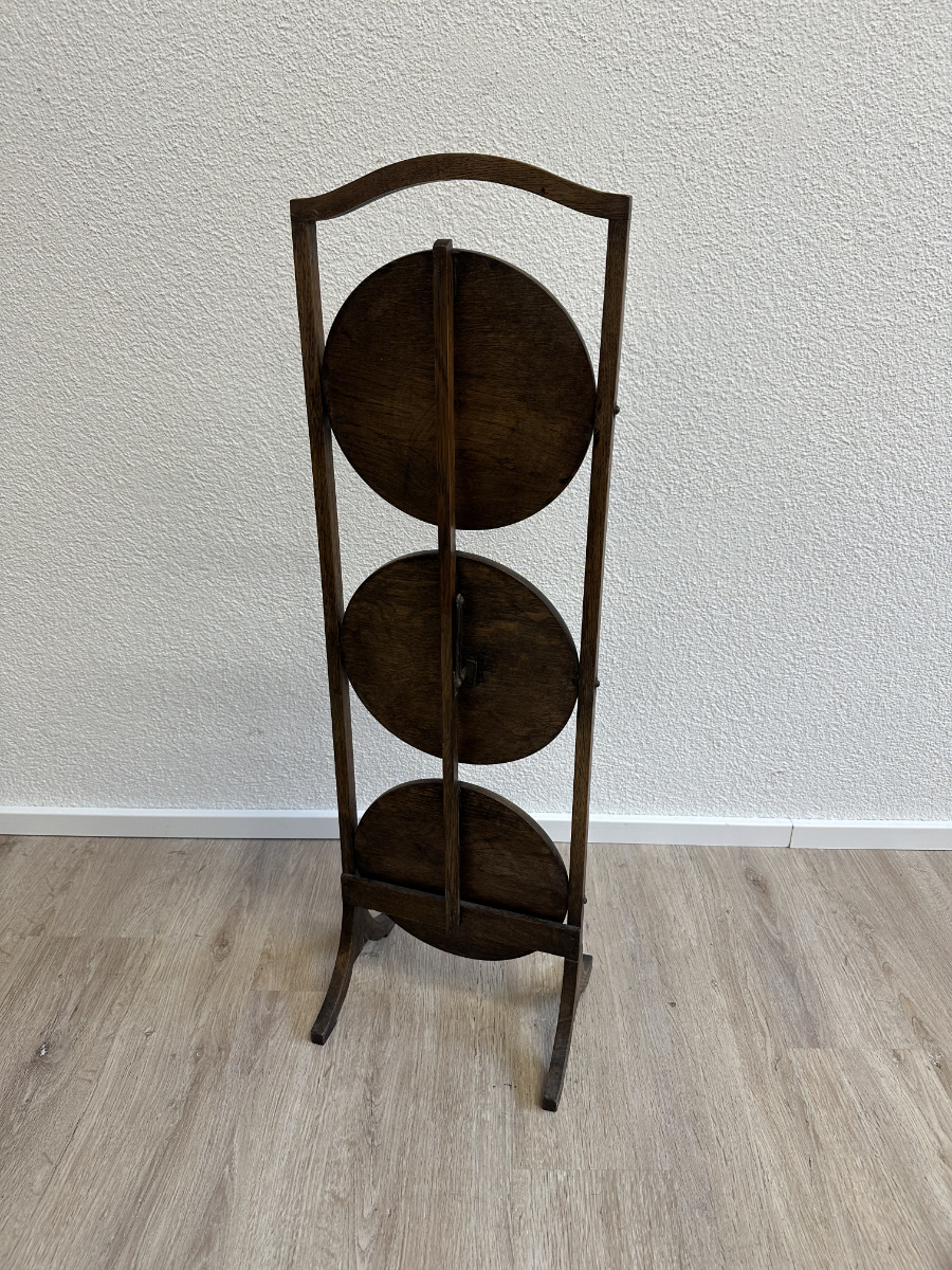 Drei runde Ablagen, ein geschwungener Tragebogen oben und diese schlanke, elegante Silhouette: Genau so sieht praktische Wohnkultur aus der Jugendstilzeit aus. Die Form wirkt leicht und dekorativ, gleichzeitig steckt dahinter ein cleveres Klappsystem, mit dem sich die Etagere platzsparend verstauen lässt. Ideal als Blumenständer, für kleine Dekoobjekte oder als stilvolle Ablage im Eingangsbereich.