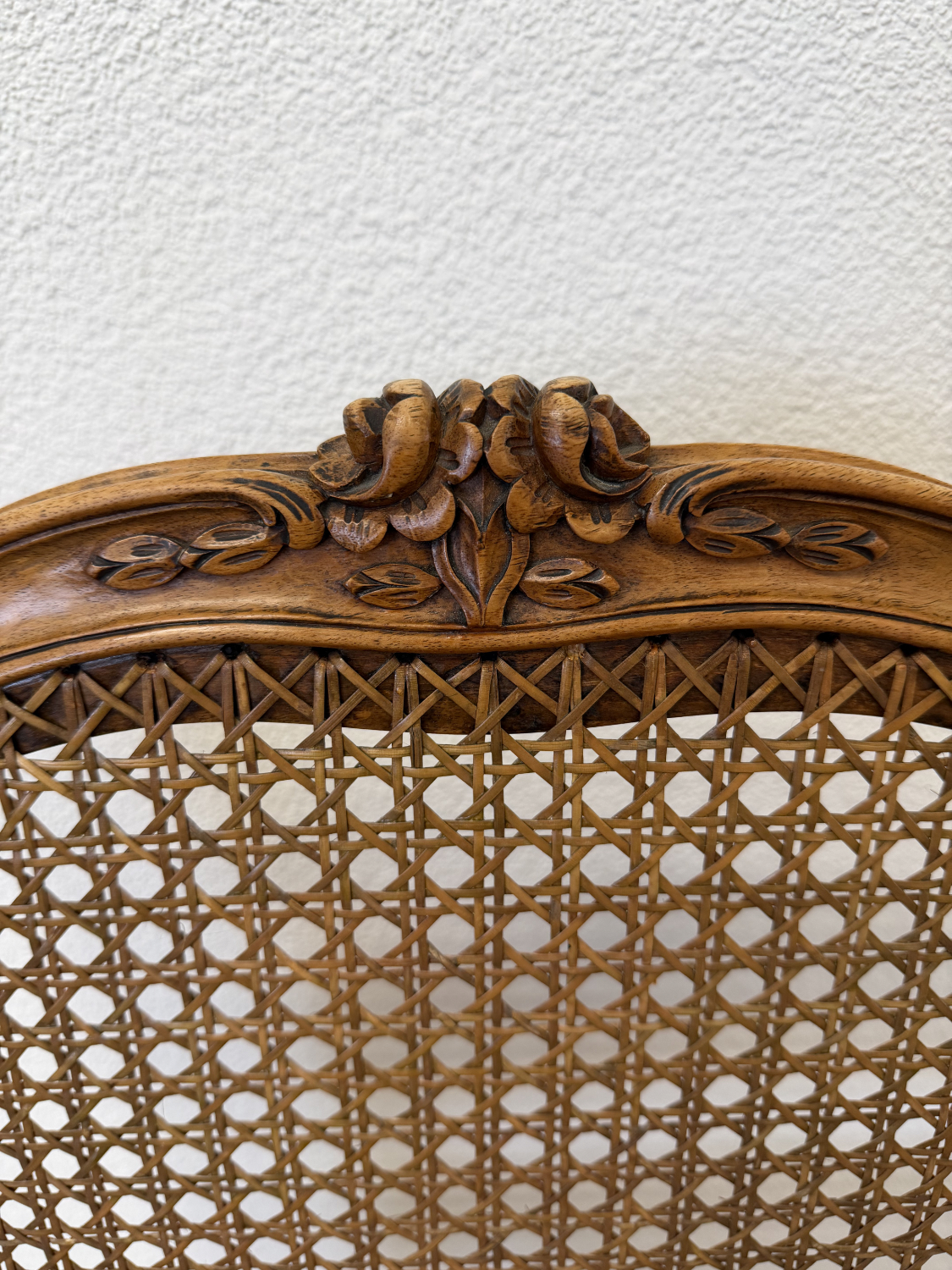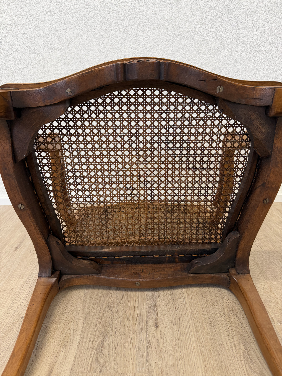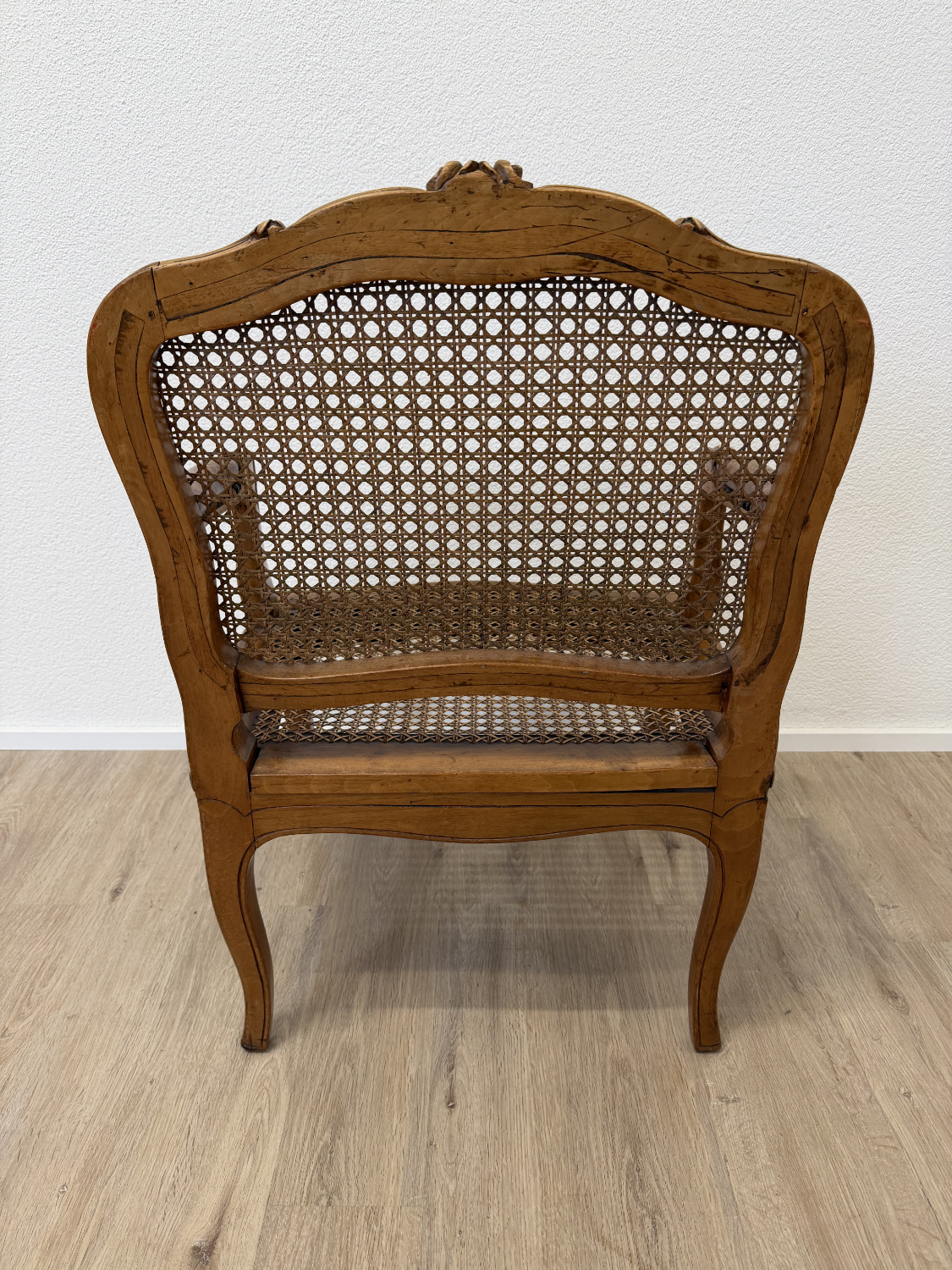 Antik Louis XV Cabriolet Sessel mit Wiener Geflecht und Leder, 18. Jahrhundert
