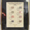 Das historische Blatt ist vollständig erhalten und in einem vergoldeten Metallrahmen hinter Glas präsentiert. Am unteren Rand befindet sich die originale Preisangabe «Preis 2 RM». Durch den schlichten schwarzen Passepartout Hintergrund kommt die grafische Gestaltung der Marken besonders gut zur Geltung.