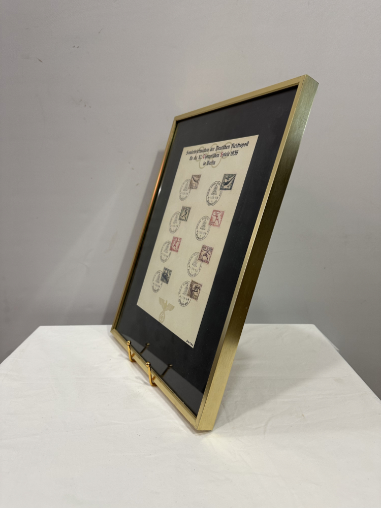 Antike Briefmarken Sammlung «Olympische Spiele Berlin 1936» im goldfarbenen Rahmen