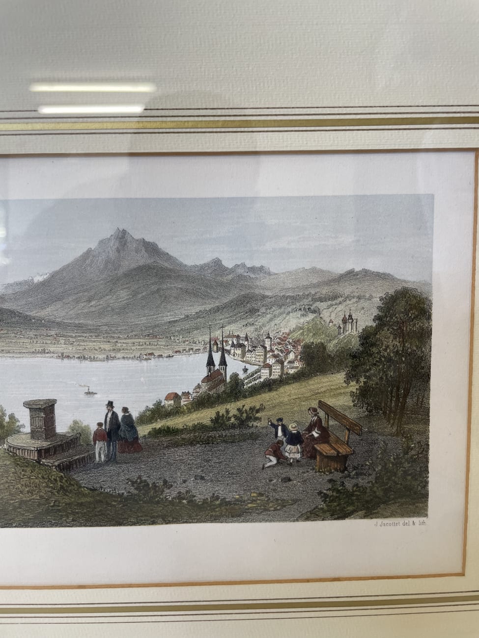 ✅ Antike handkolorierte Lithografie mit Luzern-Panorama