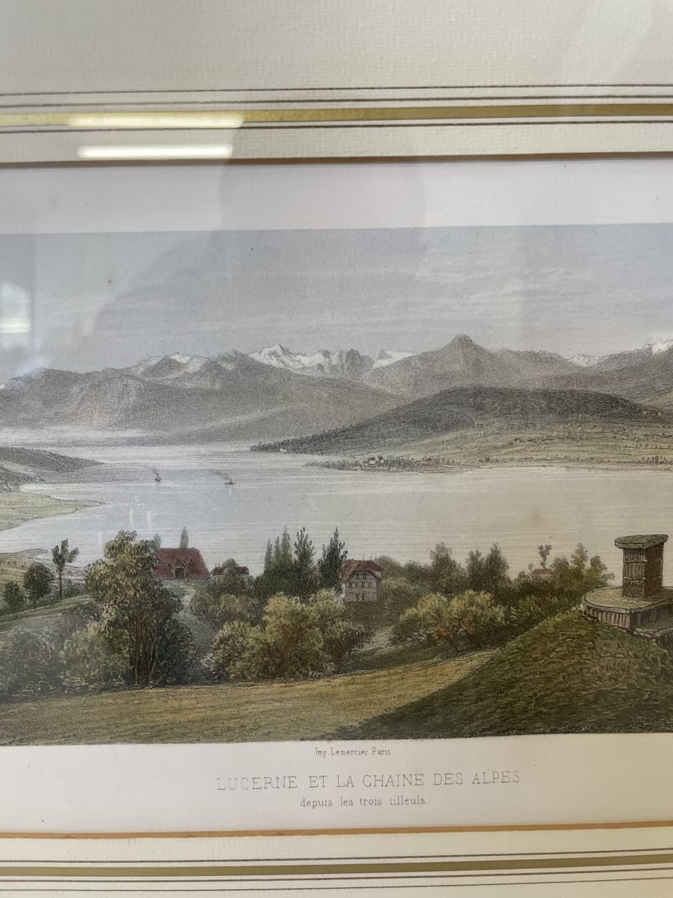 Antike Lithografie Luzern und Alpenkette «Lucerne et la Chaine des Alpes» J. Jacottet