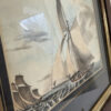 Bewegte See, gespannte Segel und eine präzise nautische Darstellung kennzeichnen dieses fein ausgearbeitete maritime Originalaquarell aus dem frühen 19. Jahrhundert. Das Motiv zeigt einen kleinen Cutter, der hart am Wind segelt, mit doppelt gerefftem Grosssegel, begleitet von weiteren Schiffen im Hintergrund. Die Szene vermittelt eindrucksvoll das Zusammenspiel von Wind, Wasser und Seemannschaft. Die Arbeit ist rückseitig eindeutig bezeichnet als „Original Watercolour, inscribed, F.C.P. dated 1833“ und lässt sich stilistisch klar in die maritime Zeichenkunst dieser Epoche einordnen. Die Kolorierung ist zurückhaltend und nuanciert, mit sorgfältig ausgeführten Linien für Takelage und Rumpf. Präsentiert wird das Werk in einem dunklen Holzrahmen mit goldfarbener Innenleiste und tiefem, dunklem Passepartout, das die Wirkung der Darstellung ruhig und ausgewogen unterstützt.