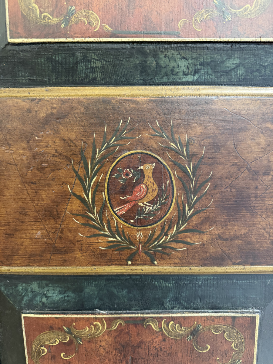 Antiker Bauernschrank mit Bauernmalerei um 1857
