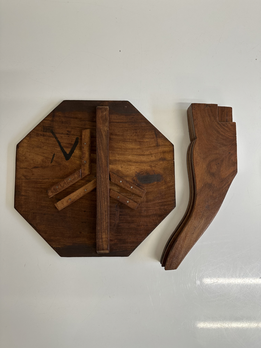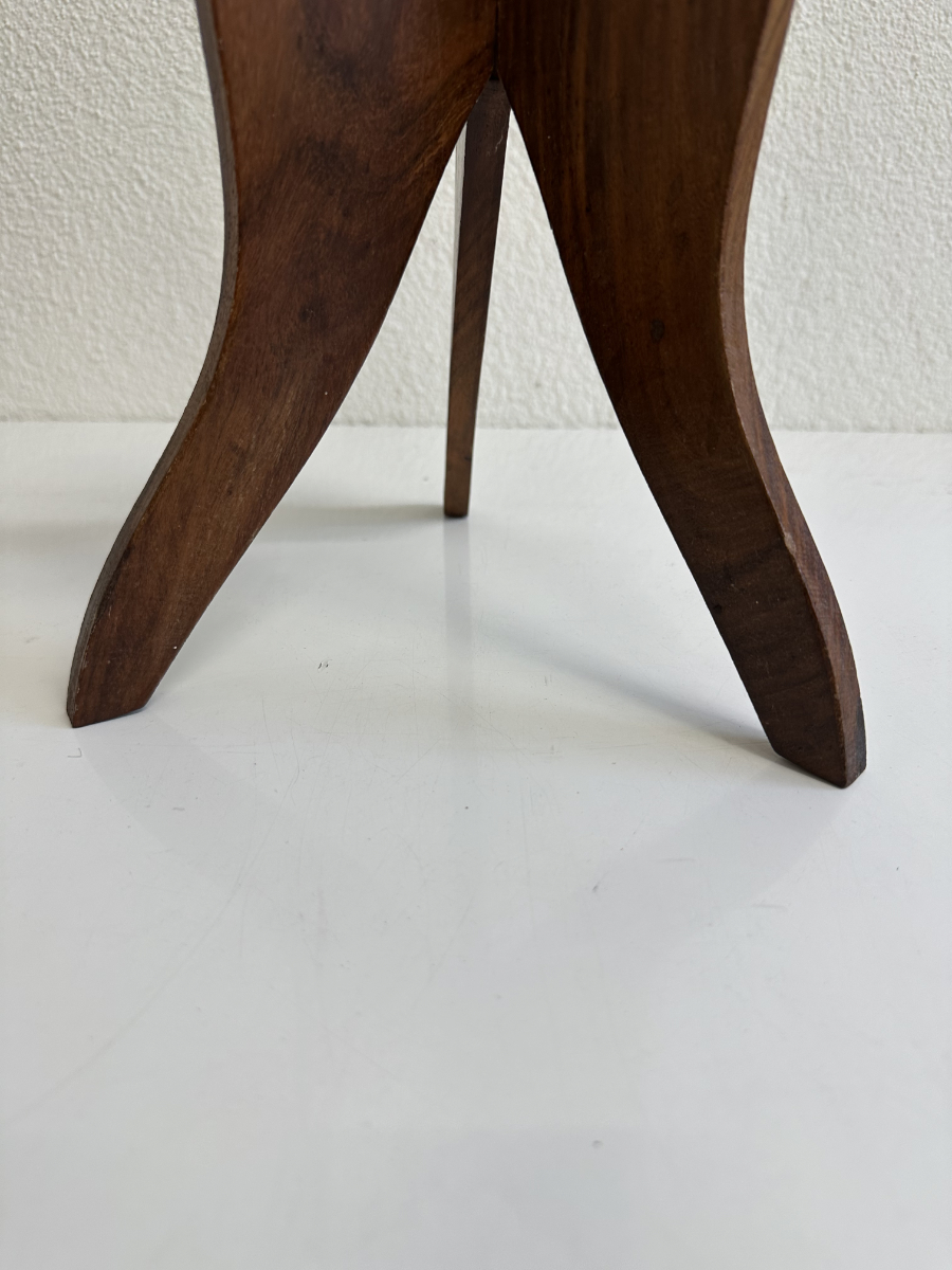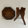 Antiker Blumenhocker mit Klappgestell aus Holz mit floralem Ziermuster