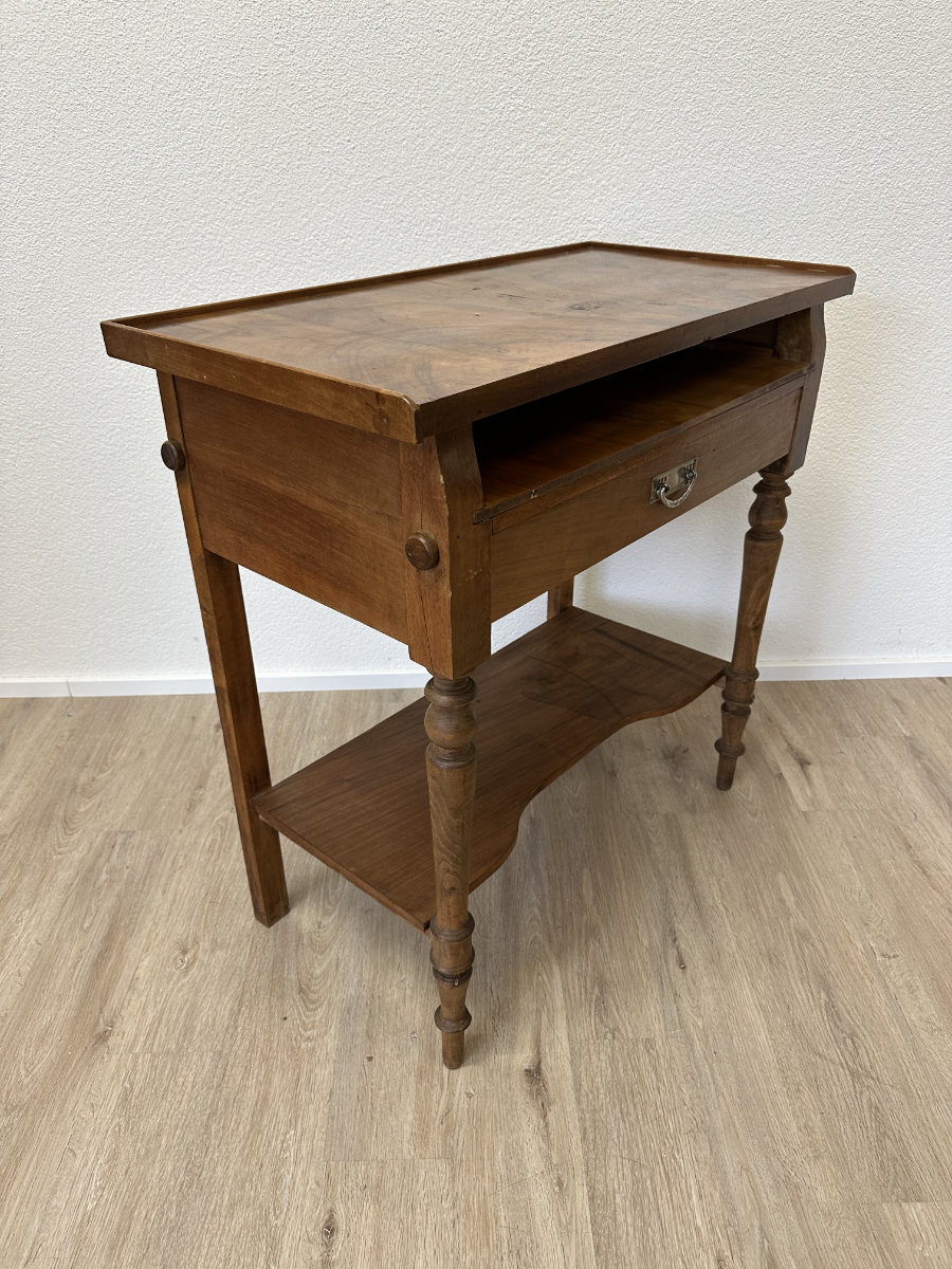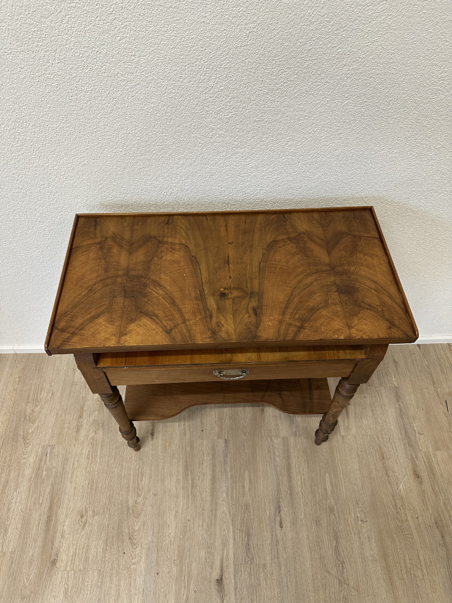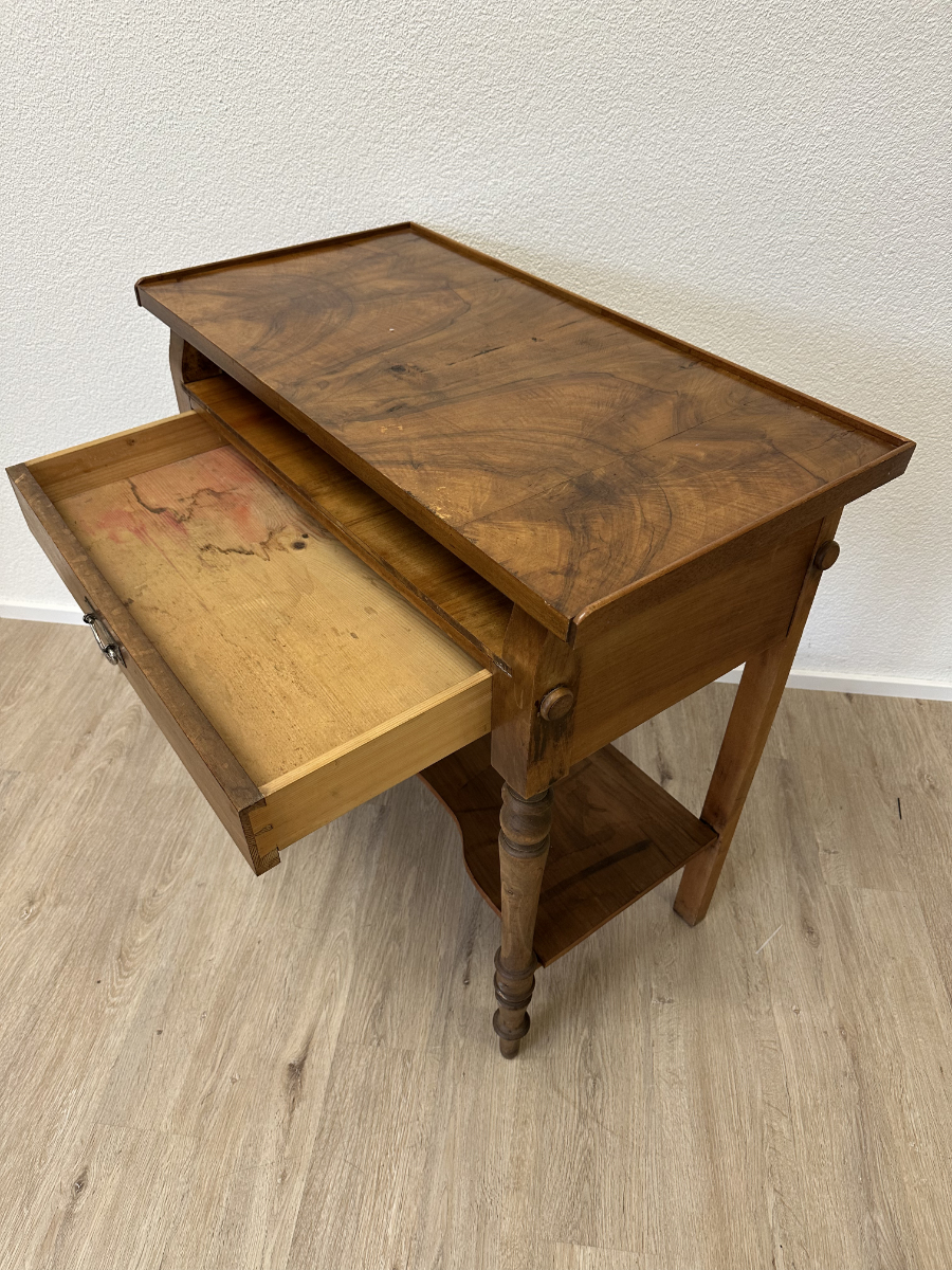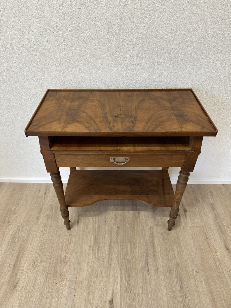 Antiker Gründerzeit-Stil Nussbaumtisch als Beistell- oder Konsolentisch mit Schublade und Ablage