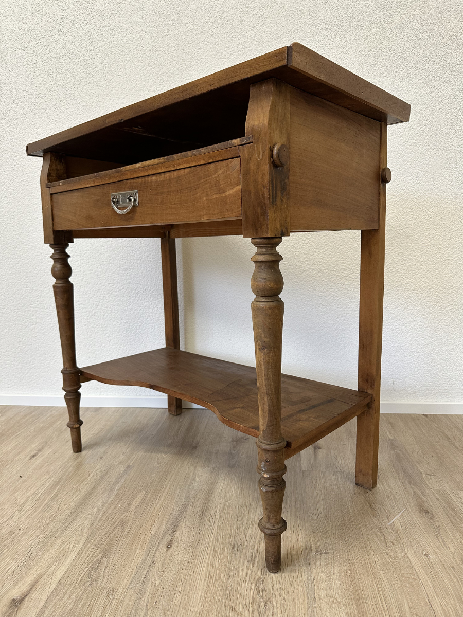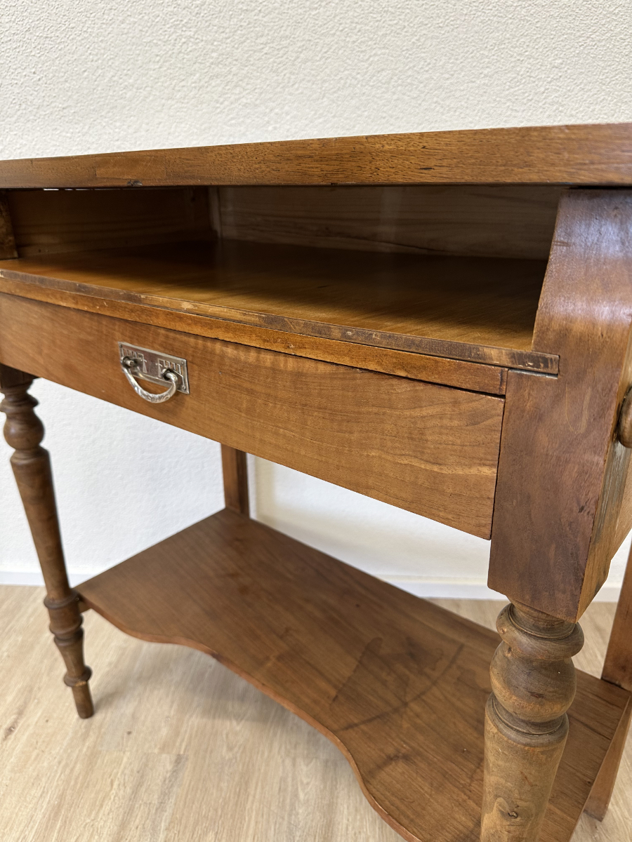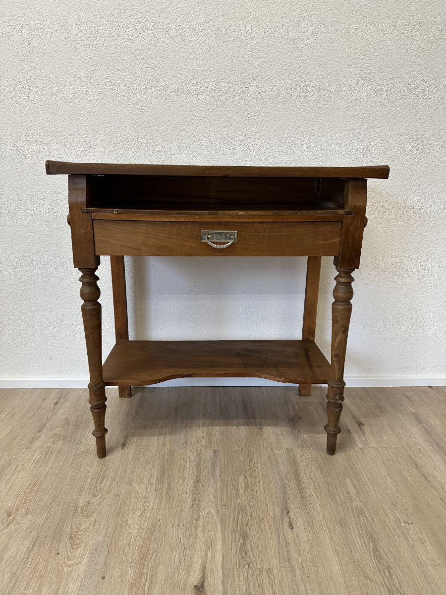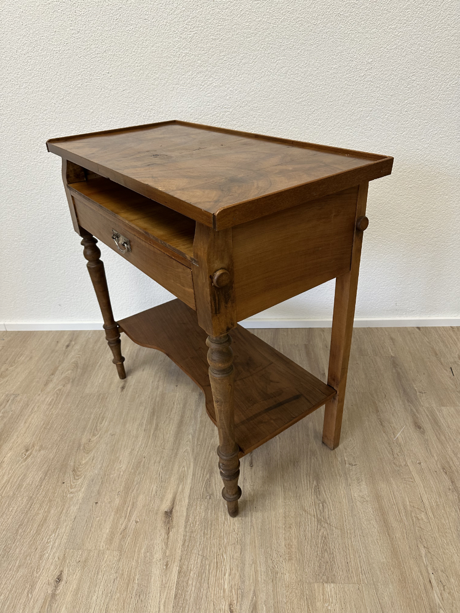 Antiker Gründerzeit-Stil Nussbaumtisch als Beistell- oder Konsolentisch mit Schublade und Ablage