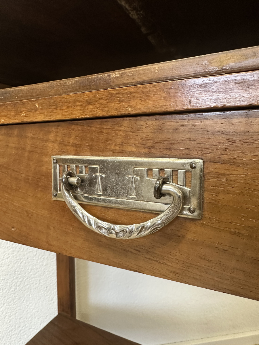 ✅ Eine Schublade mit originalem Metallgriff und offenes Ablagefach