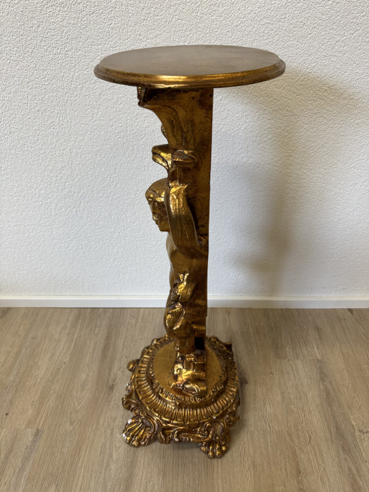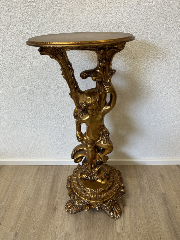 Antiker Historismus Beistelltisch mit Putto-Figur und vergoldeter Fassung, ca. Ende 19. Jahrhundert