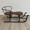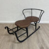 Geschwungene Eisenkufen, eine organisch geformte Sitzfläche und eine elegante Rückenlehne aus Rundstahl prägen diesen antiken Kinder-Schlitten. Die weichen Linien und dekorativen Schwünge erinnern klar an den Jugendstil, der für fliessende Formen und handwerkliche Details steht.