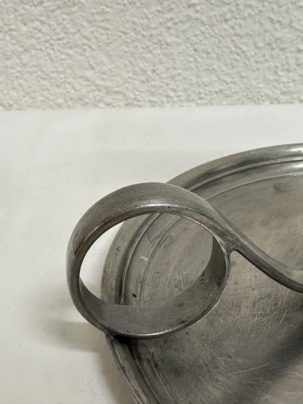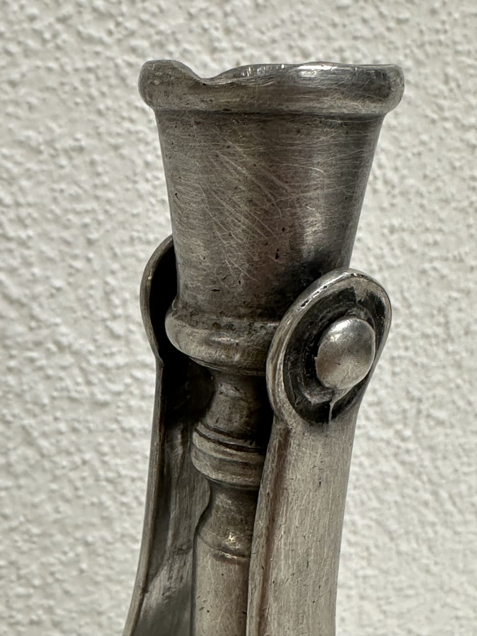 Antiker Kerzenhalter aus Zinn mit Fingerschlaufe, ca. Ende 19. Jhr.
