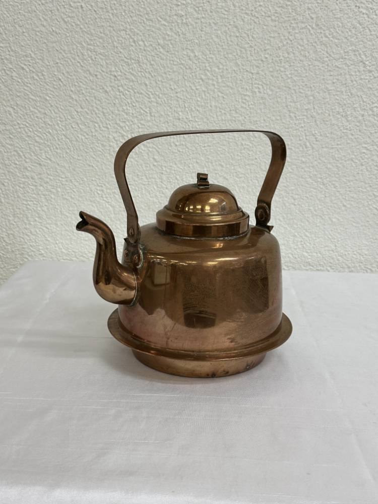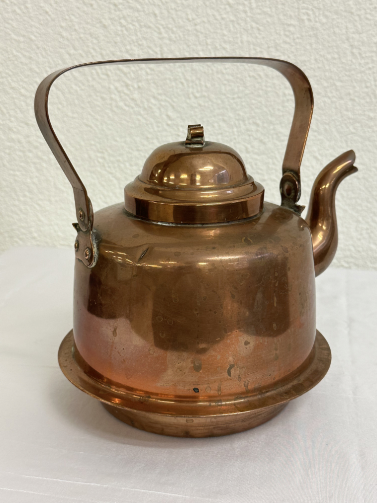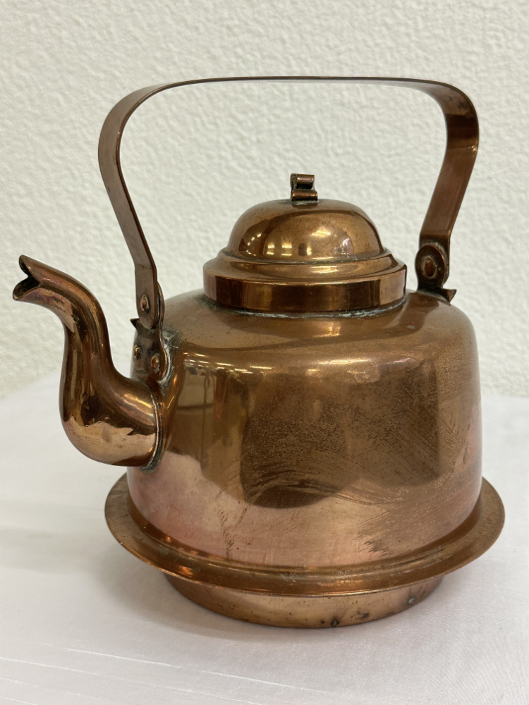 Antike Kupferkanne von Skultuna, Sweden mit Bügelgriff und Deckel