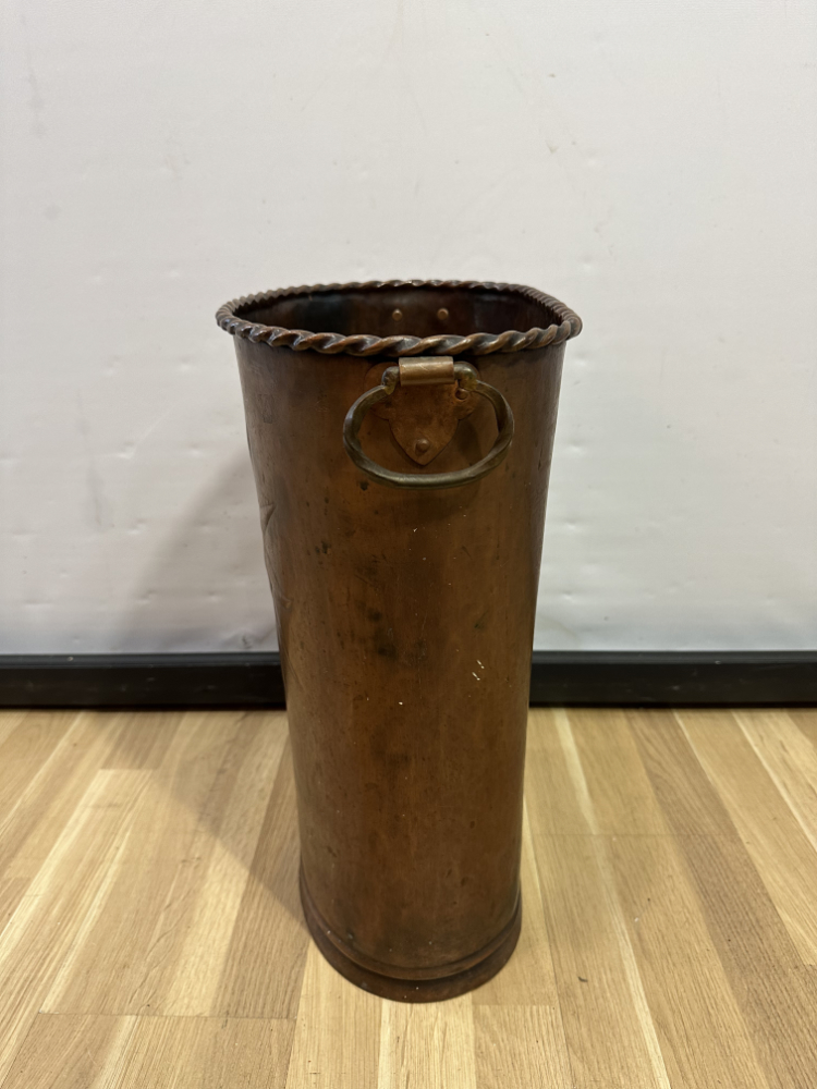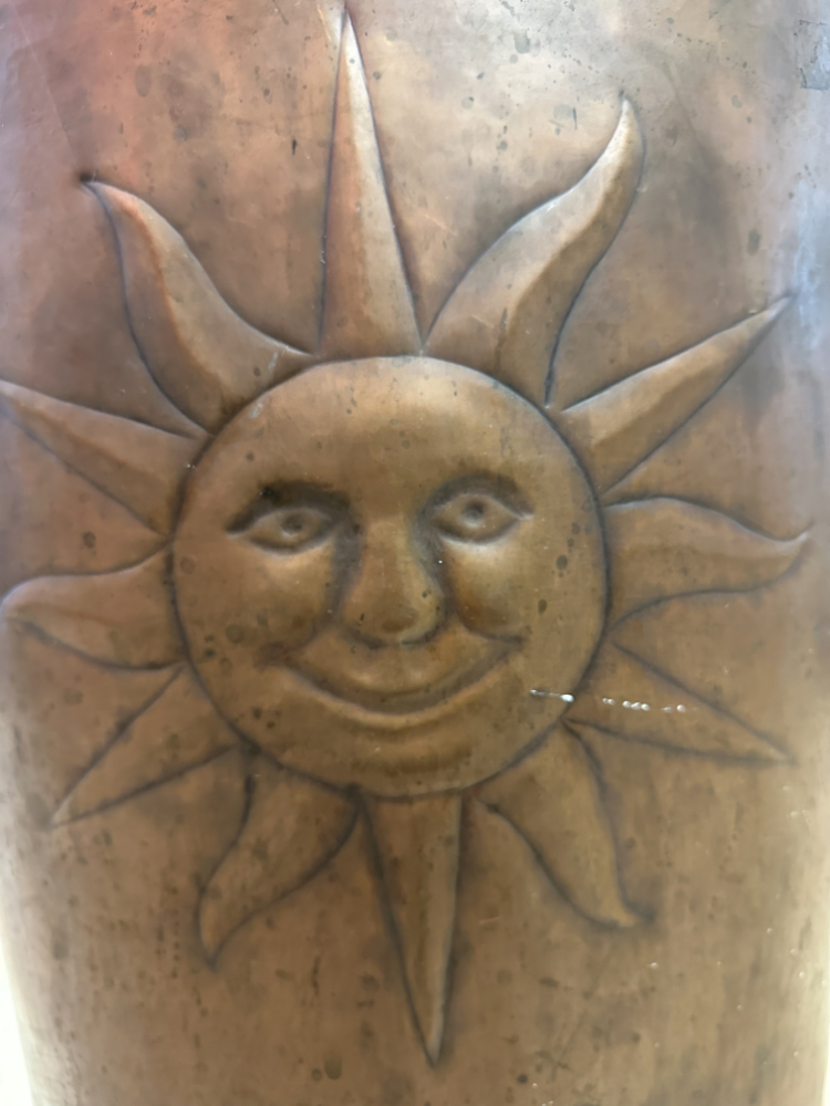 Antiker Schirmständer aus Kupfer mit Sonnenmotiv
