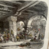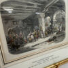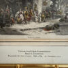 Diese detailreiche Darstellung zeigt eine lebendige Marktszene im historischen Luzern. Unter einem massiven Gewölbe mit Holzbalken versammeln sich Händler, Käuferinnen, Kinder und Marktstände zu einem dichten Alltagsbild vergangener Zeit. Architektur und Figuren sind klar über feine, präzise Linien aufgebaut, typisch für einen Stahlstich des 19. Jahrhunderts. Die Schattenwirkung entsteht durch sorgfältige Kreuzschraffuren, während die dezente Handkolorierung Kleidung und Details hervorhebt, ohne den grafischen Charakter zu überdecken. Der Titel „Markt in Luzern“ ist im Blatt vermerkt. Die unten angebrachte Widmung wurde deutlich später ergänzt und gehört nicht zur ursprünglichen Entstehung des Stichs. Präsentiert wird das Werk in einem schlichten Goldrahmen mit Passepartout und Glas.