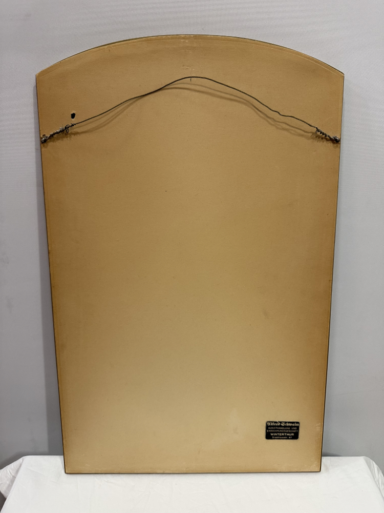 In den 1950er–1970er Jahren wurde der Rahmen in der Kunsthandlung und Einrahmerei Alfred Schwalm in Winterthur fachgerecht neu gefasst und mit Spiegelglas versehen. Auf der Rückseite befindet sich das originale Metalletikett der Werkstatt. Das Ergebnis ist ein harmonisches Unikat – historischer Rahmen in elegantem Vintage-Zustand, bereit für den Einsatz in klassischen oder modernen Räumen.