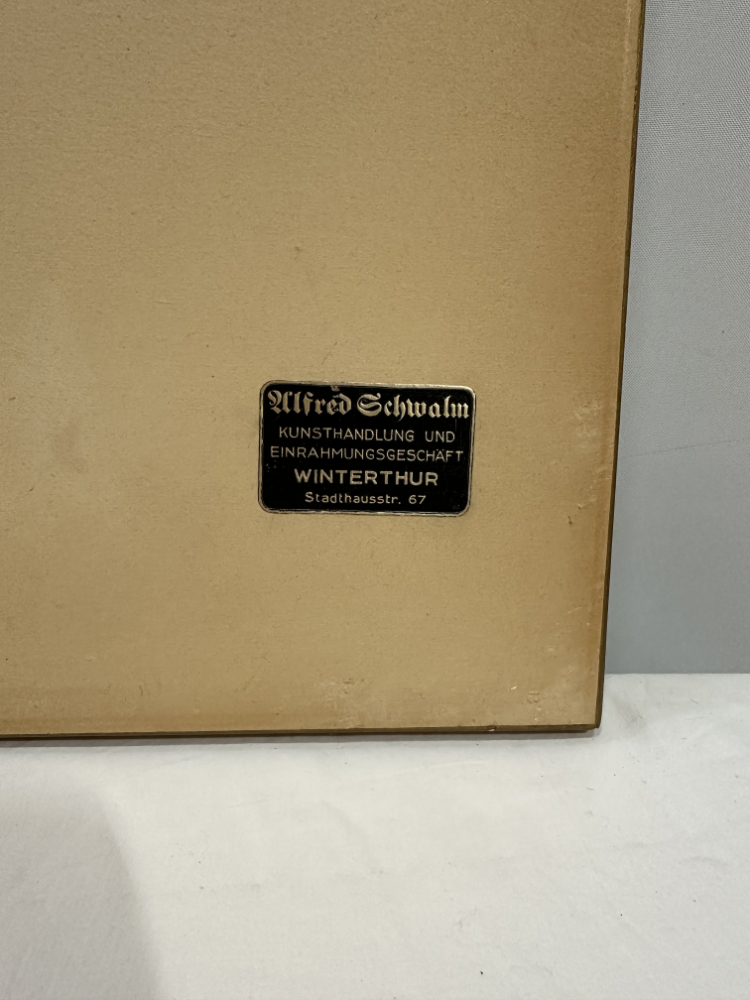 ✅ Eingerahmt bei Alfred Schwalm, Winterthur (Etikett rückseitig)