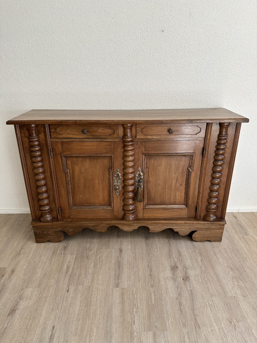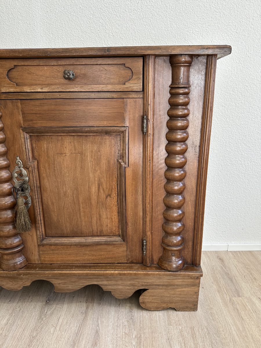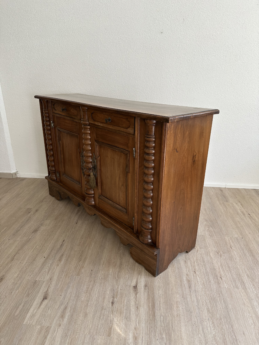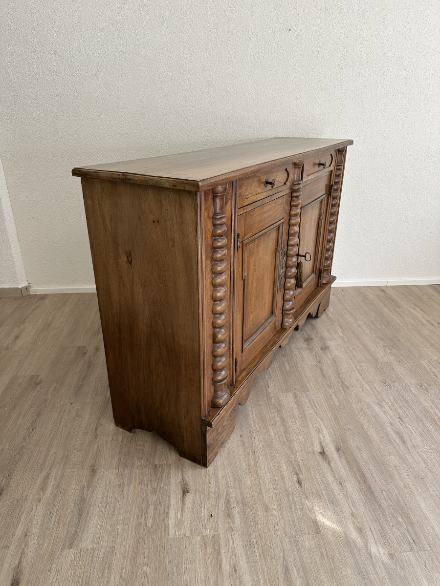 Antikes Barock Sideboard aus Nussbaum Massivholz mit gedrechselten Säulen, um 1880