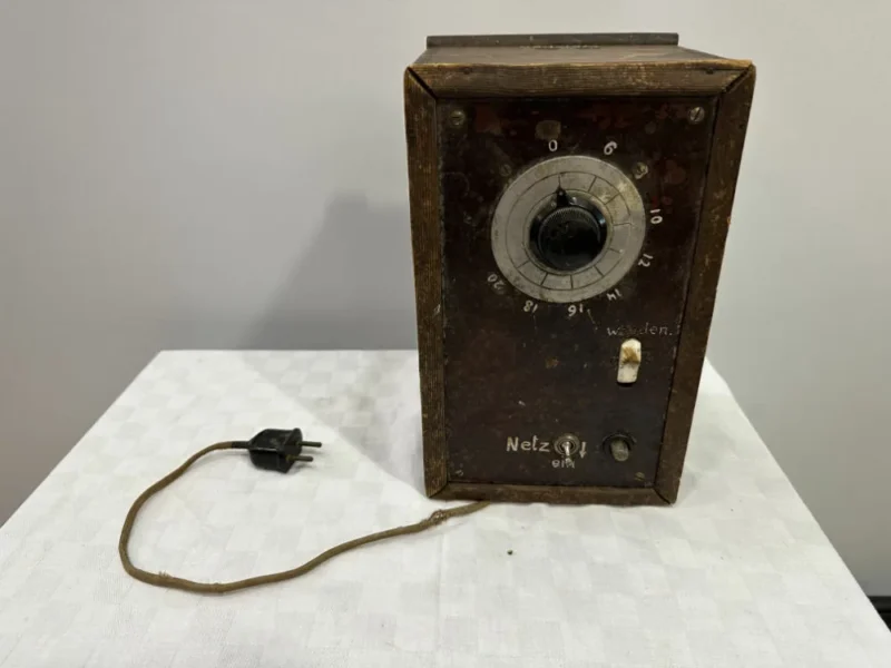 Antikes Reizstromgerät – Elektrisiergerät Um 1900 befindet sich in einem guten bis sehr guten Zustand. Das Gerät wurde von uns getestet. Man hat Anschluss auf der Seite für zwei Beleuchtungen ( 6Volt.) Eine weitere zum Weichen und eine letzte fürs Fahren. Auf der Vorderseite kann man die Stärke noch regulieren. Man kann es gebrauchen wie auch als eine schöne alte Dekoration verwenden.