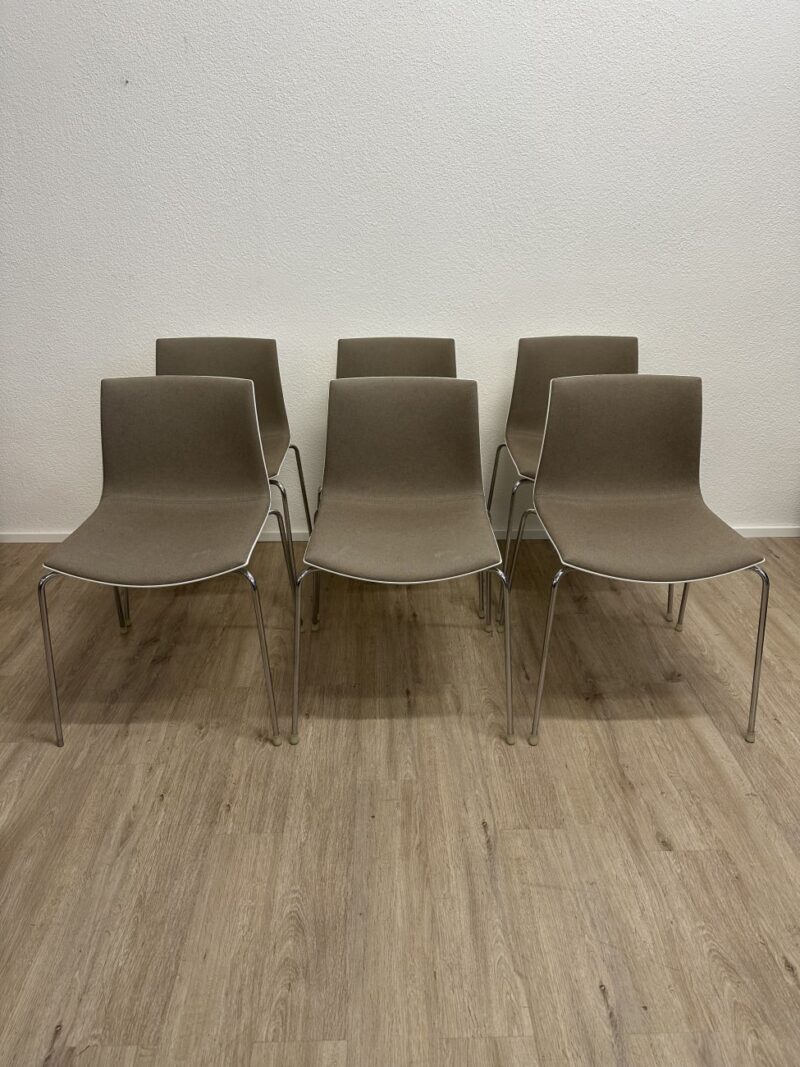 Arper Design Stuhl 6er-Set mit Chromgestell und grauem Stoffbezug