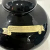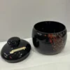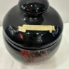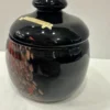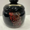 Der Avventurina Murano Topf in Schwarz befindet sich in einem guten bis sehr guten Zustand. Dieses charmante Stück ist aus dem speziellen Murano-Glas gefertigt und zeichnet sich auf der Vorderseite durch ein ansprechendes Muster aus, das in Rot- und Goldtönen Blattmotive darstellt. Produkte aus Murano-Glas bestechen durch ihre exquisite Qualität, fabelhaften Farben und unübertroffene Handwerkskunst, was auch bei diesem Topf besonders zur Geltung kommt. Er eignet sich hervorragend zur Aufbewahrung von beispielsweise Zucker oder Salz sowie von Teebeuteln oder Kaffeekapseln. Gleichzeitig stellt er eine wunderschöne Dekoration dar.