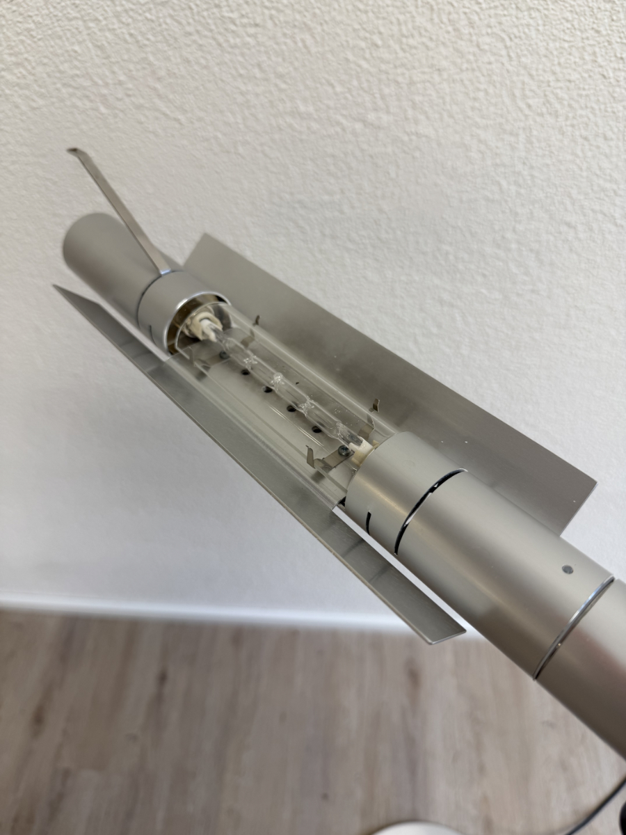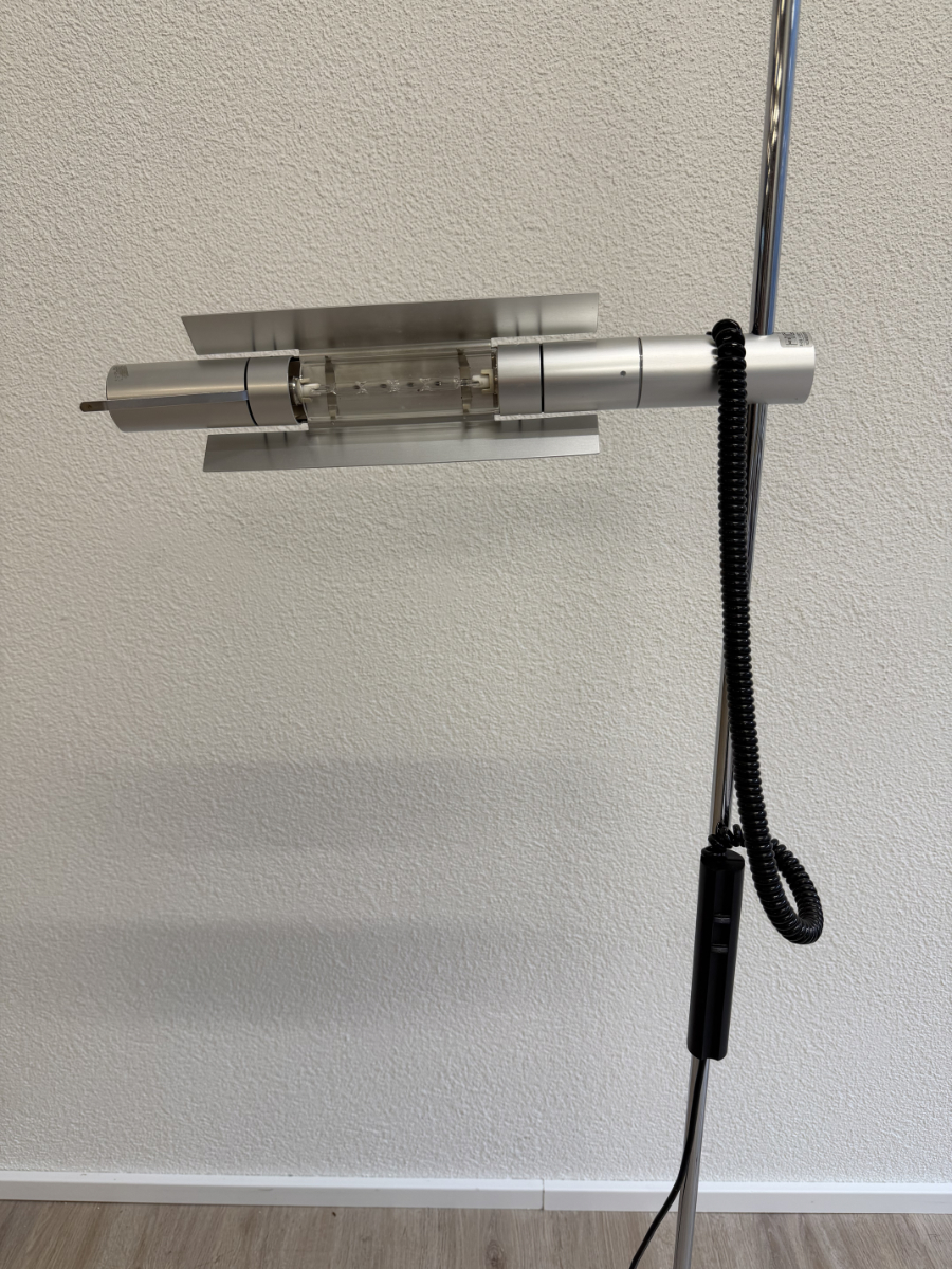 ✅ Material: verchromtes Rohrgestänge, Aluminium Leuchtenkopf/Reflektoren, Metallfuss