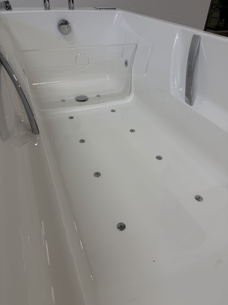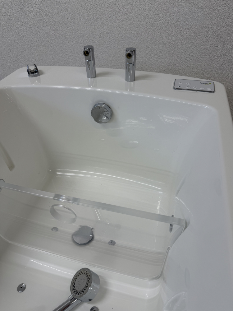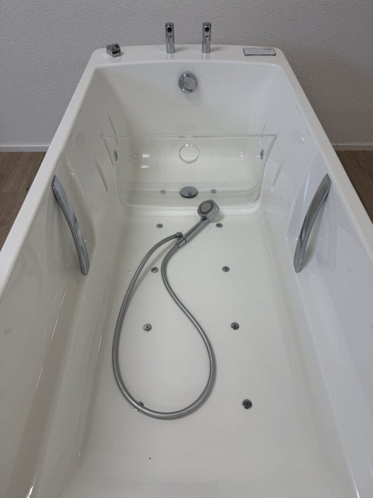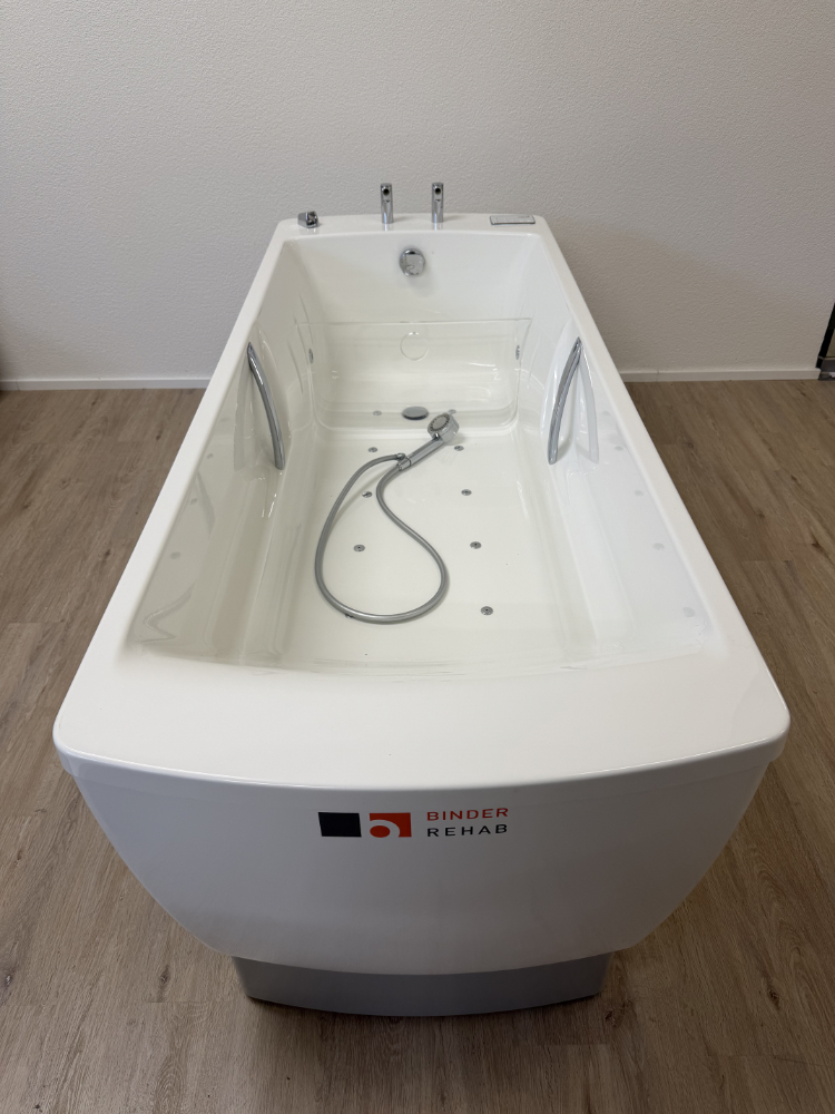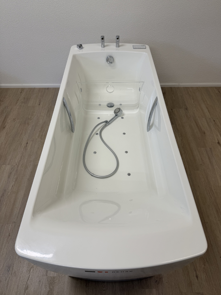 Das Modell AVERO Comfort von Beka Hospitec wurde speziell für den Einsatz in Pflegeeinrichtungen, Reha-Zentren oder für barrierearme Badezimmerlösungen entwickelt. Die grosszügige Wannenform ermöglicht ein bequemes Ein- und Aussteigen, unterstützt durch integrierte Haltegriffe und eine stabile Sitzfläche im Inneren. Mehrere eingelassene Düsen sorgen für ein angenehmes Bade- und Wellnesserlebnis. Die Bedienung erfolgt über ein übersichtliches, seitlich integriertes Bedienfeld. Armaturen, Handbrause und technische Anschlüsse sind sauber verarbeitet und für den professionellen Alltag ausgelegt.