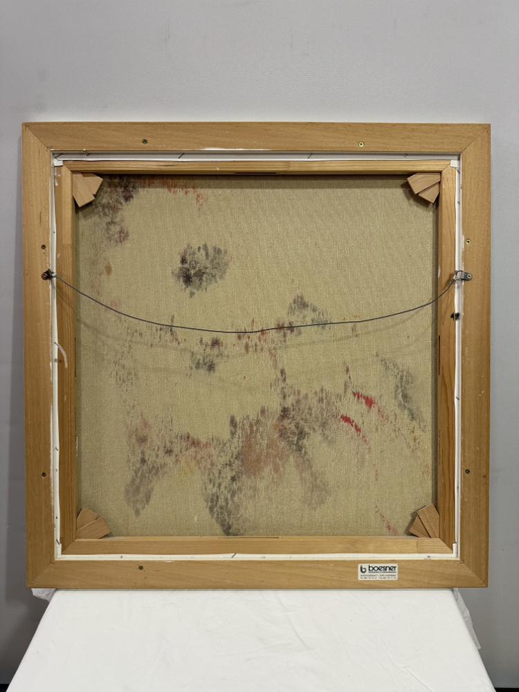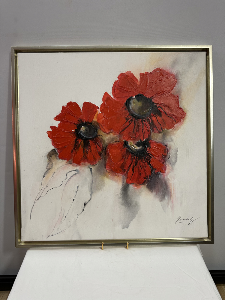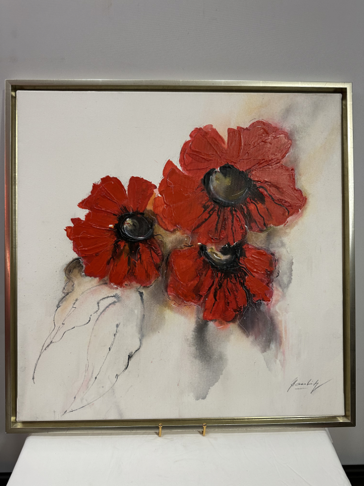Blumen Ölgemälde auf Leinwand mit rotem Blütenmotiv – Signiert 64 x 64 cm